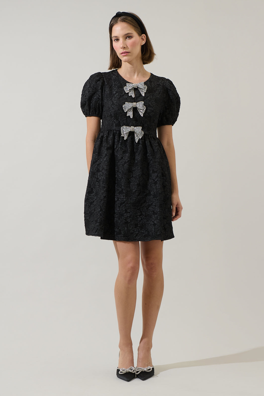Steal the spotlight in this velvet stunner! This party-ready dress is composed of stretchy velvet fabric that shapes short sleeves, a round neckline, and a princess-seamed bodice adorned with cute bow-inspired details and flirty keyhole cutouts at the center. Complete the look with heels and a sparkly clutch for a glam finish!