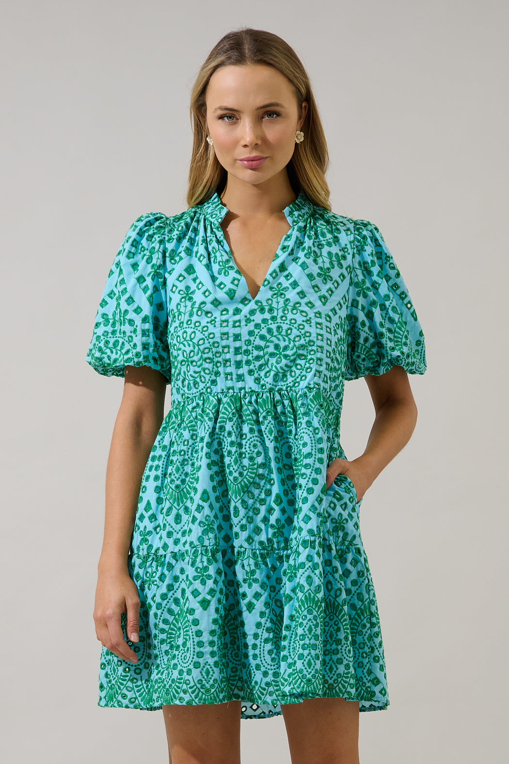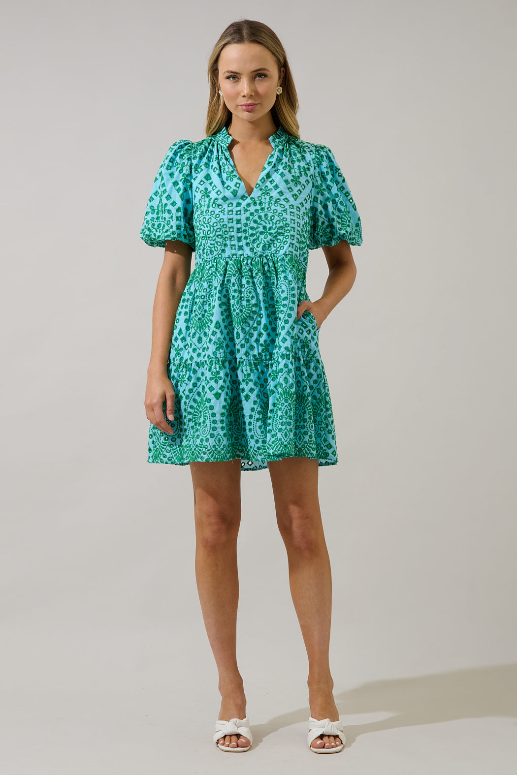 At Sea Jacey Babydoll Eyelet Mini Dress