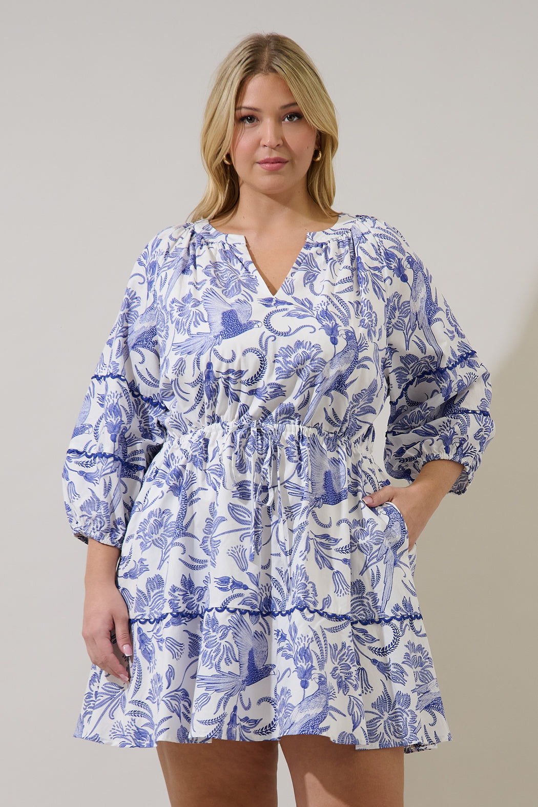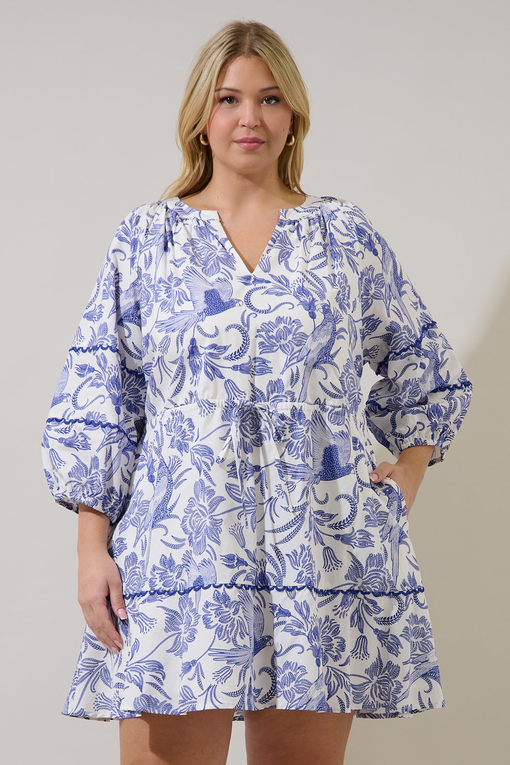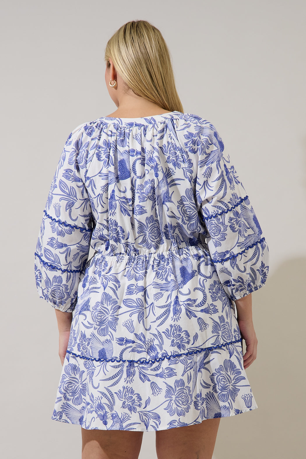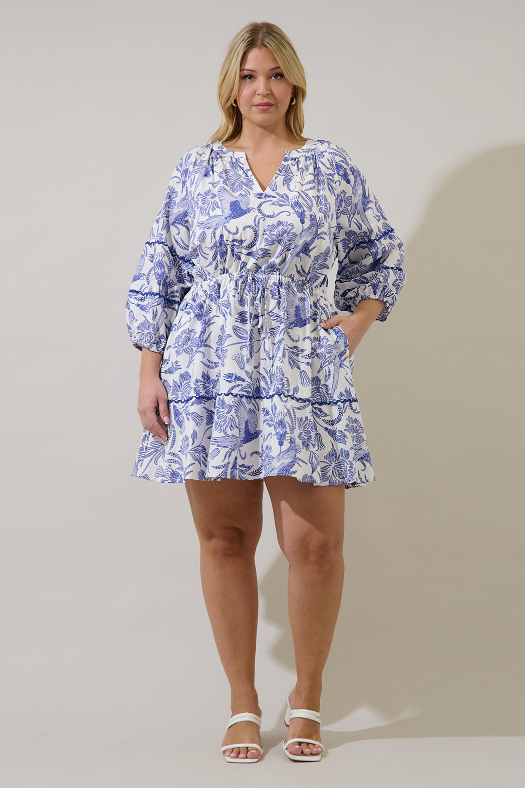 Dabria Split Neck Mini Dress Virda Floral Curve