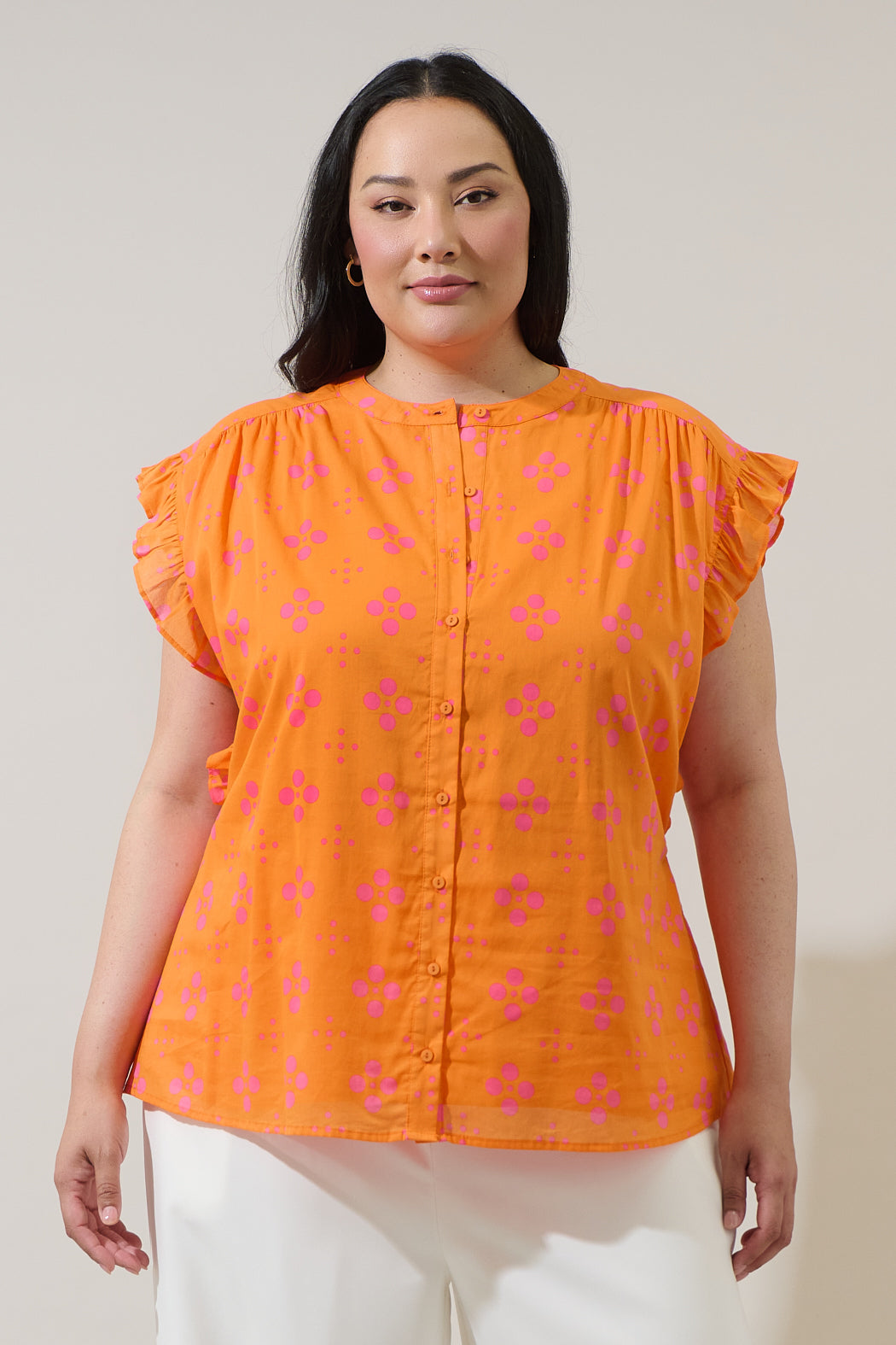 Add a cheerful twist to your everyday wardrobe with this easy to style top! Featuring a vibrant floral print, playful ruffled cap sleeves, and a classic button down front, it combines feminine details with effortless style for any occasion. Pair it with high waisted jeans and block heels for a chic daytime look, or tuck it into a midi skirt with a clutch for a polished evening outfit.