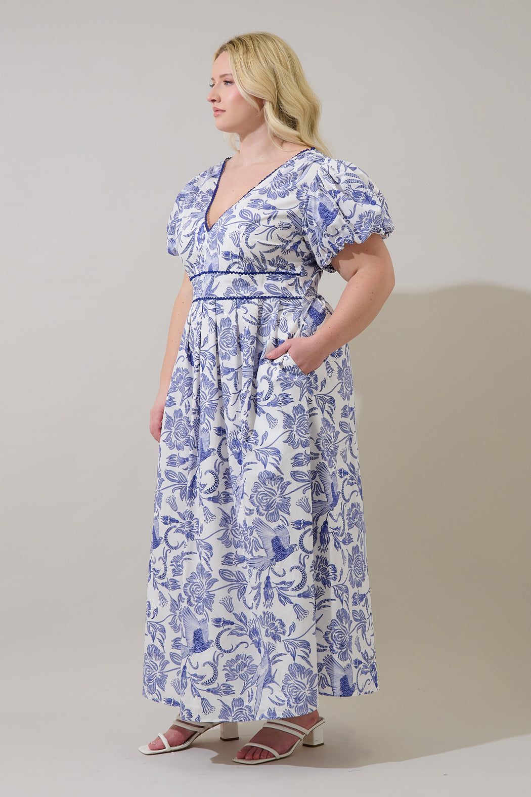 Jaylene Pleated Maxi Dress Virda Floral Curve