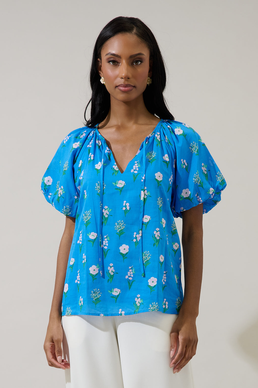It's the season of blossoming flowers and high noon.It has a nice floral print that decorates a tucked bubble sleeve that highlights a split neckline. The top maintains a standard, straight fit and can be styled tucked into any pants.