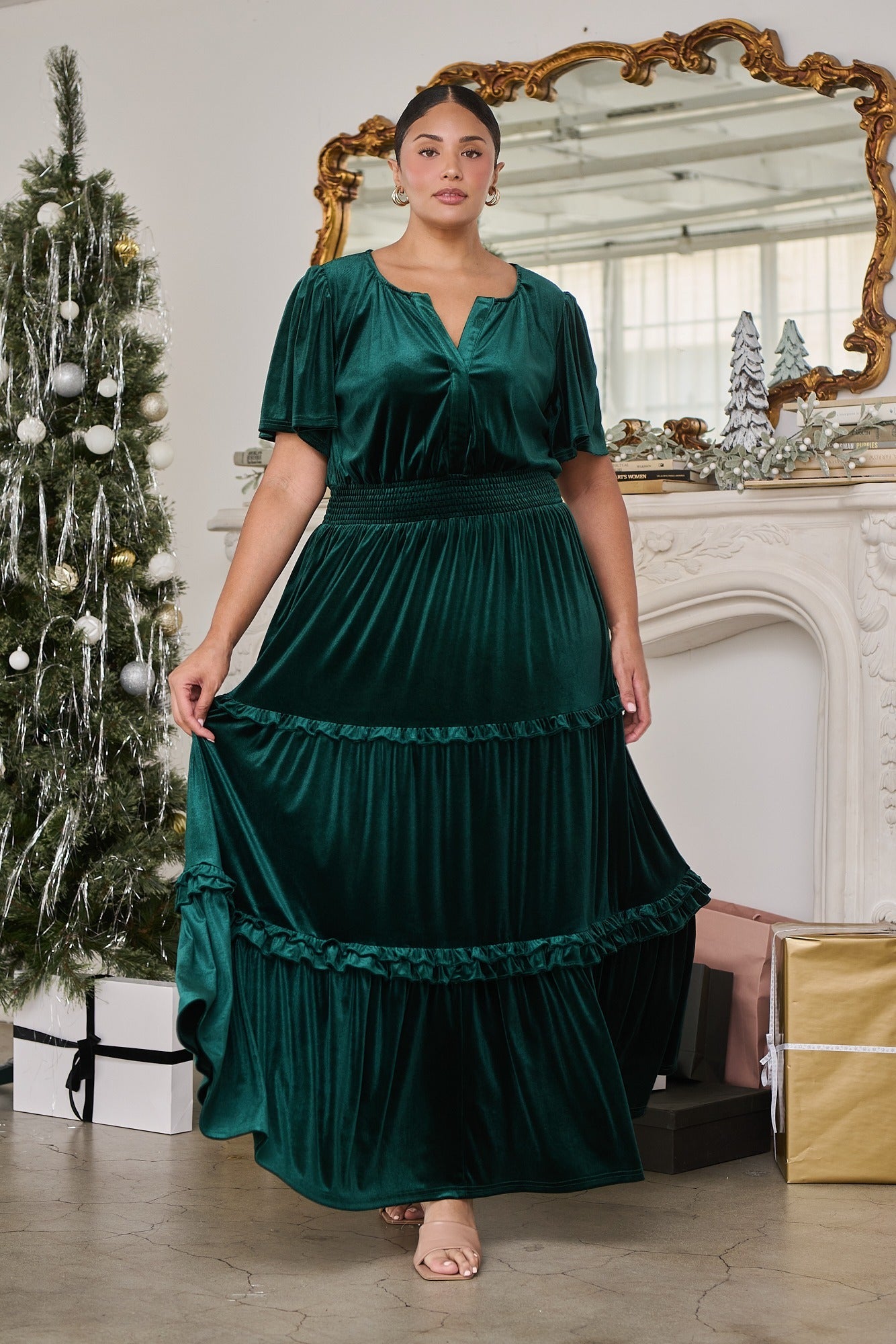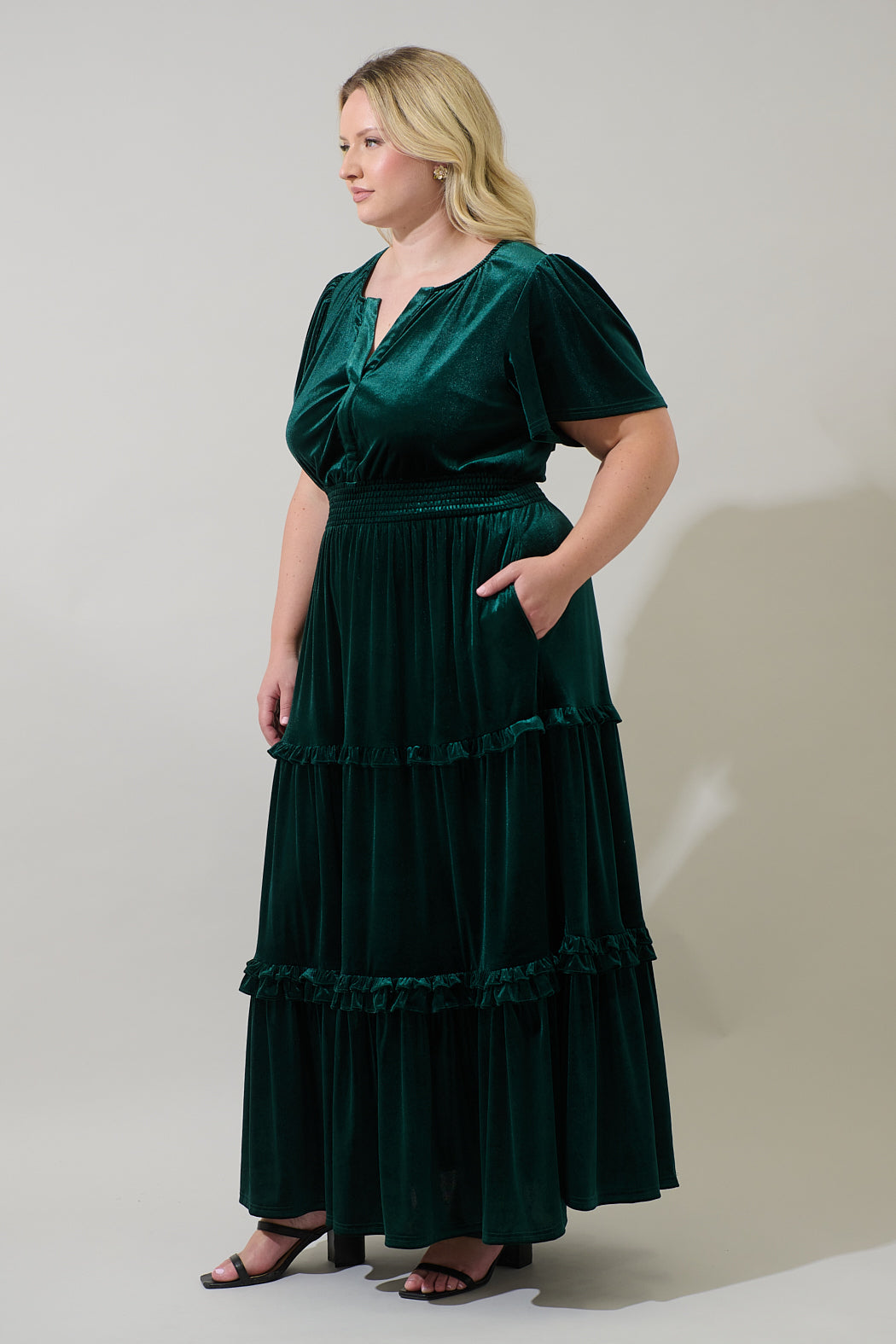 Juliete Velvet Palmer Tiered Maxi Dress Curve