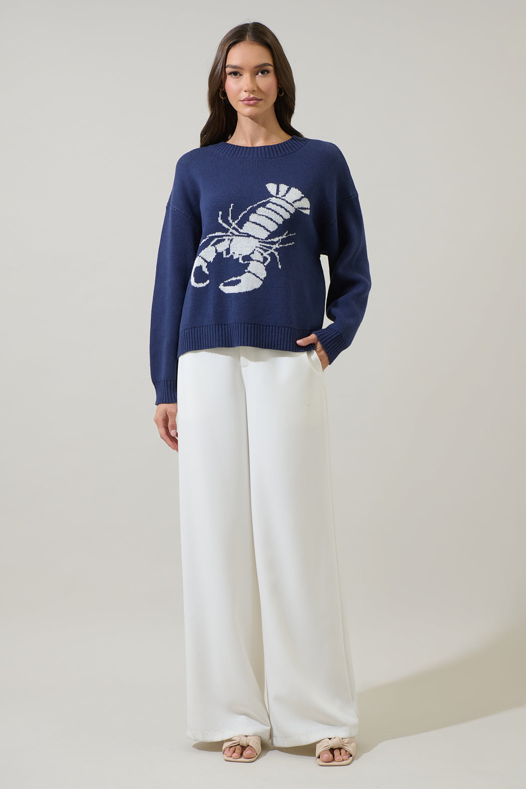 Add a playful touch to your cozy days with this pullover sweater, featuring a relaxed dropped shoulder fit. Soft and easy to wear, it’s styled with a charming lobster motif front and center. Pair it with jeans or skirts for an effortlessly cute look.
