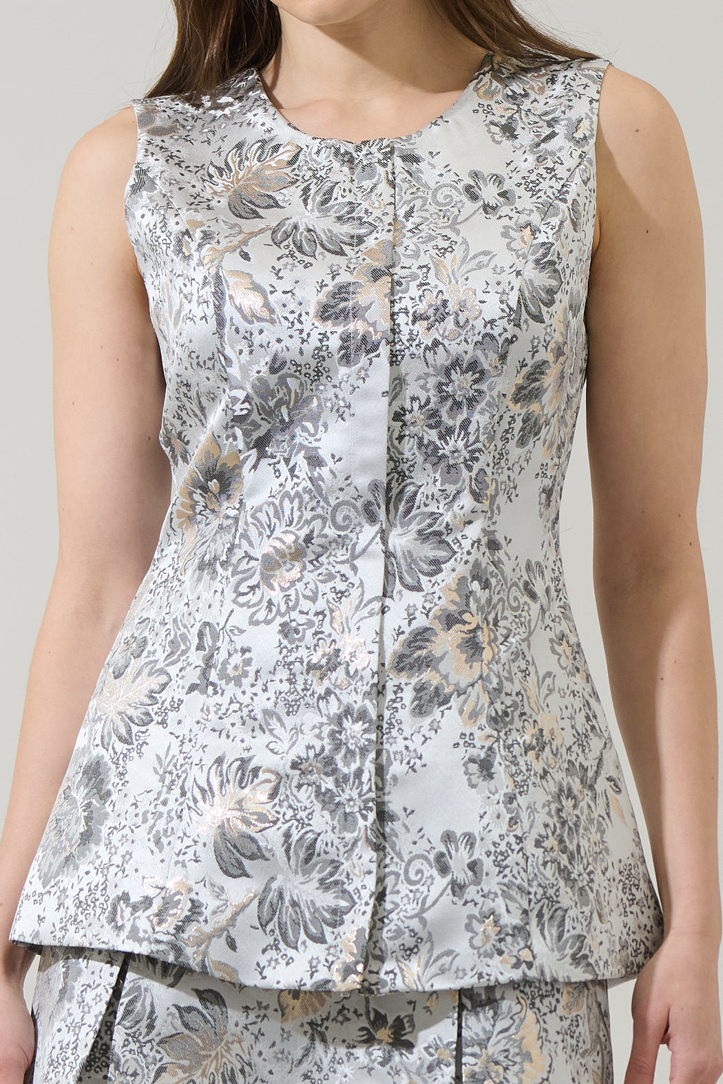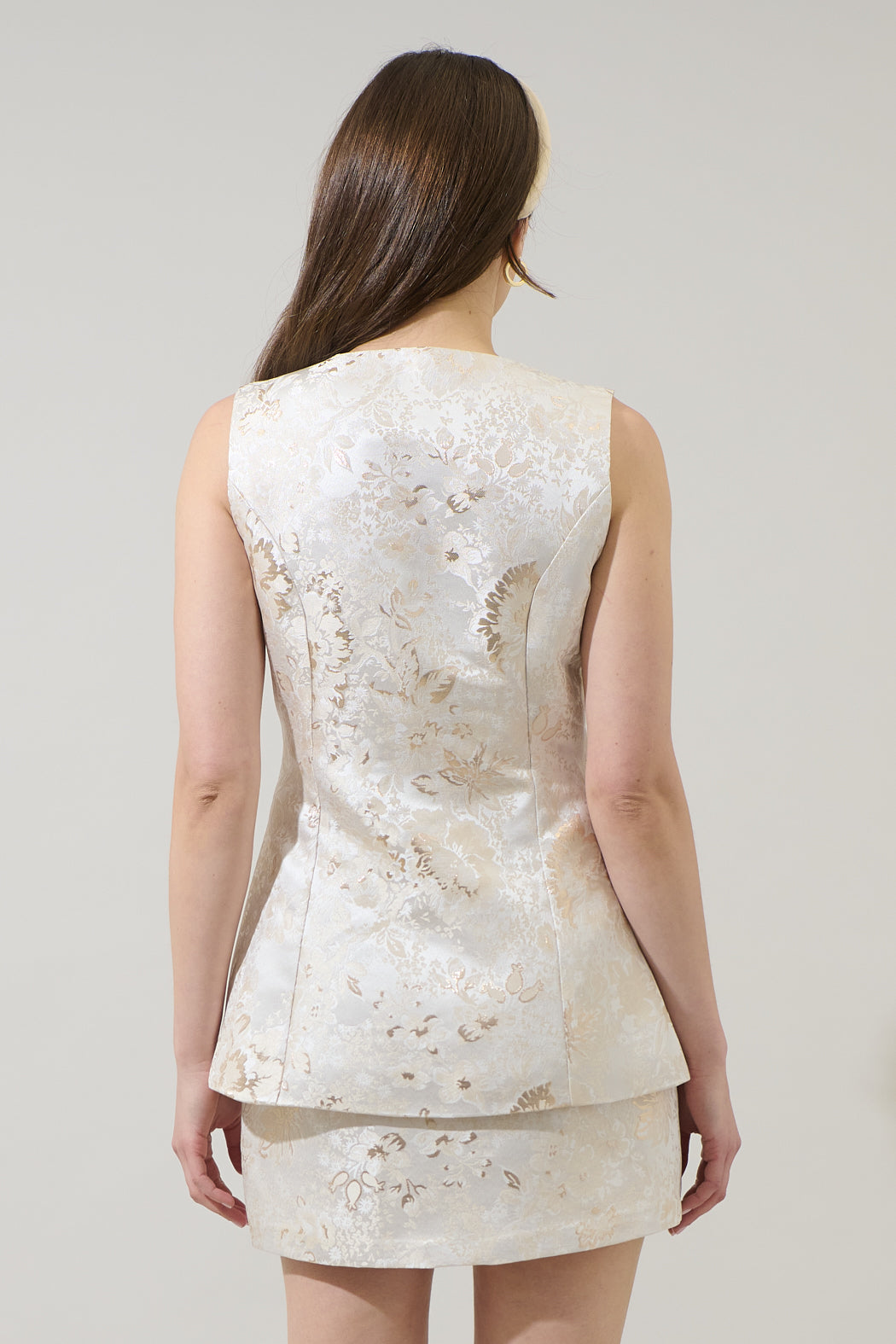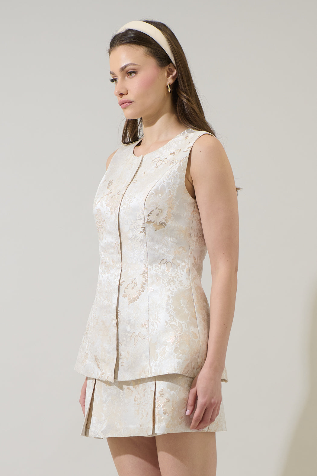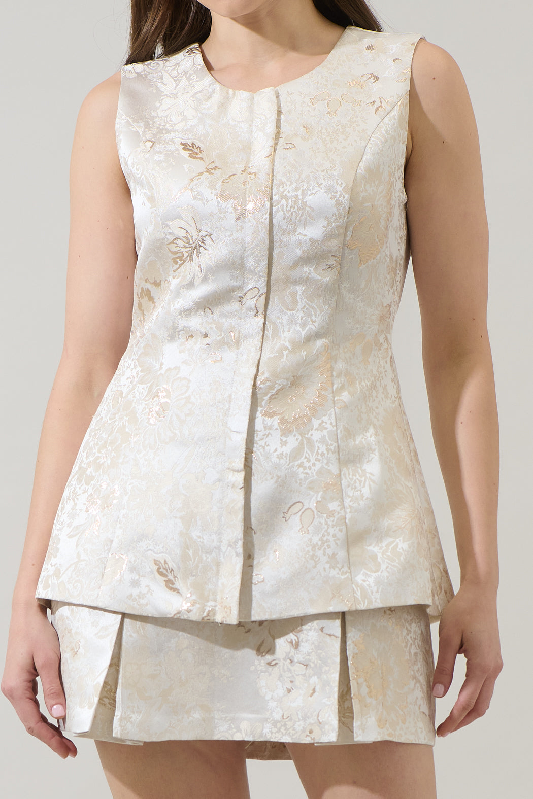 Elevate your wardrobe with florals that feel modern, fresh, and effortlessly chic. Darling black-and-white florals and champagne tones feature a sleeveless look with a round neck. It has a fitted look with a invisible zipper front. Comes in two color variations. Pair it with the matching bottoms and nude heels for a complete, polished look.