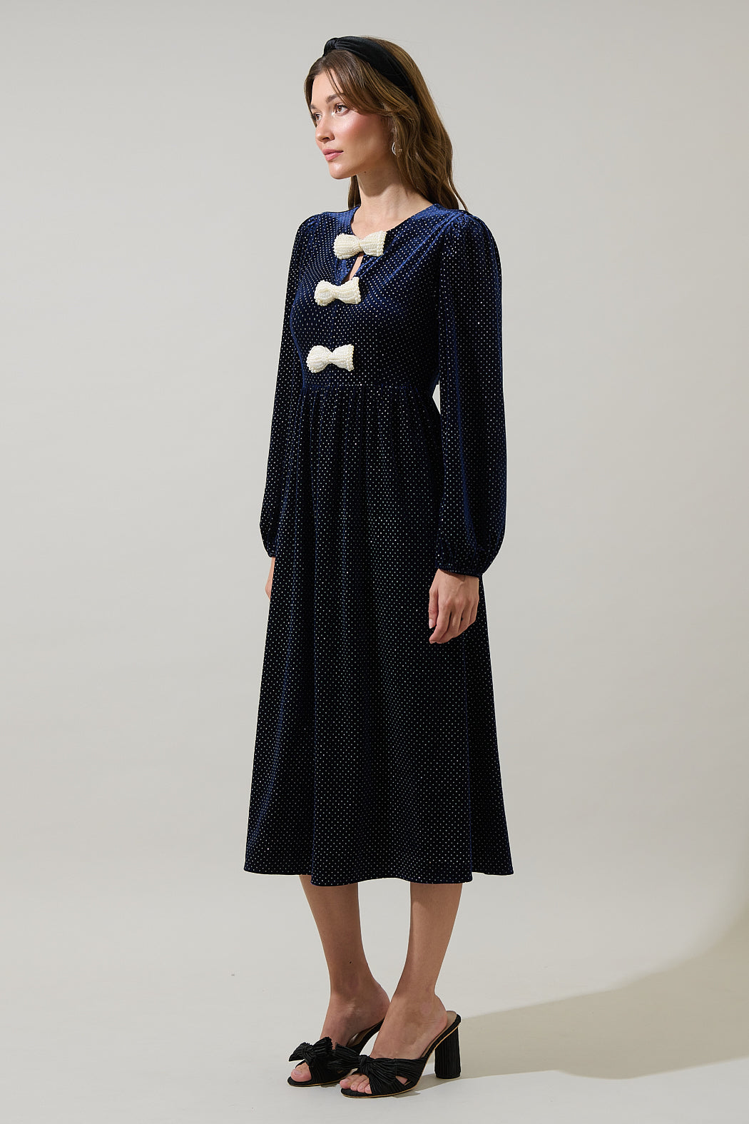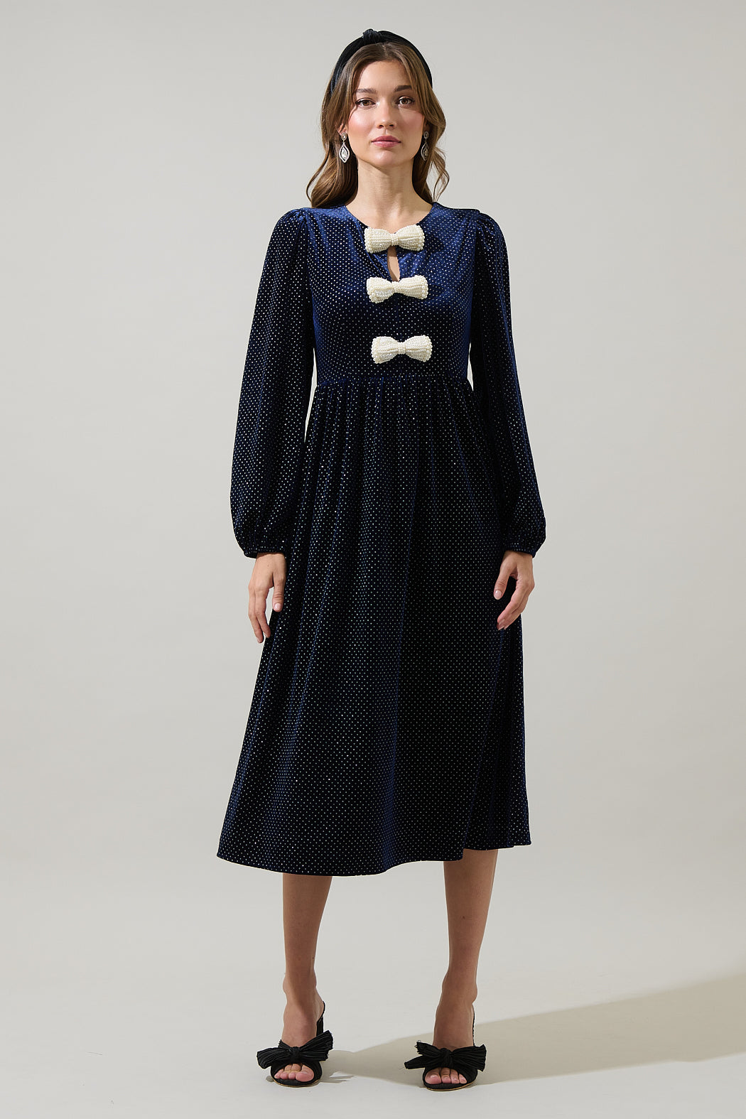 Nelly Dot Velvet Glow Bow Midi Dress