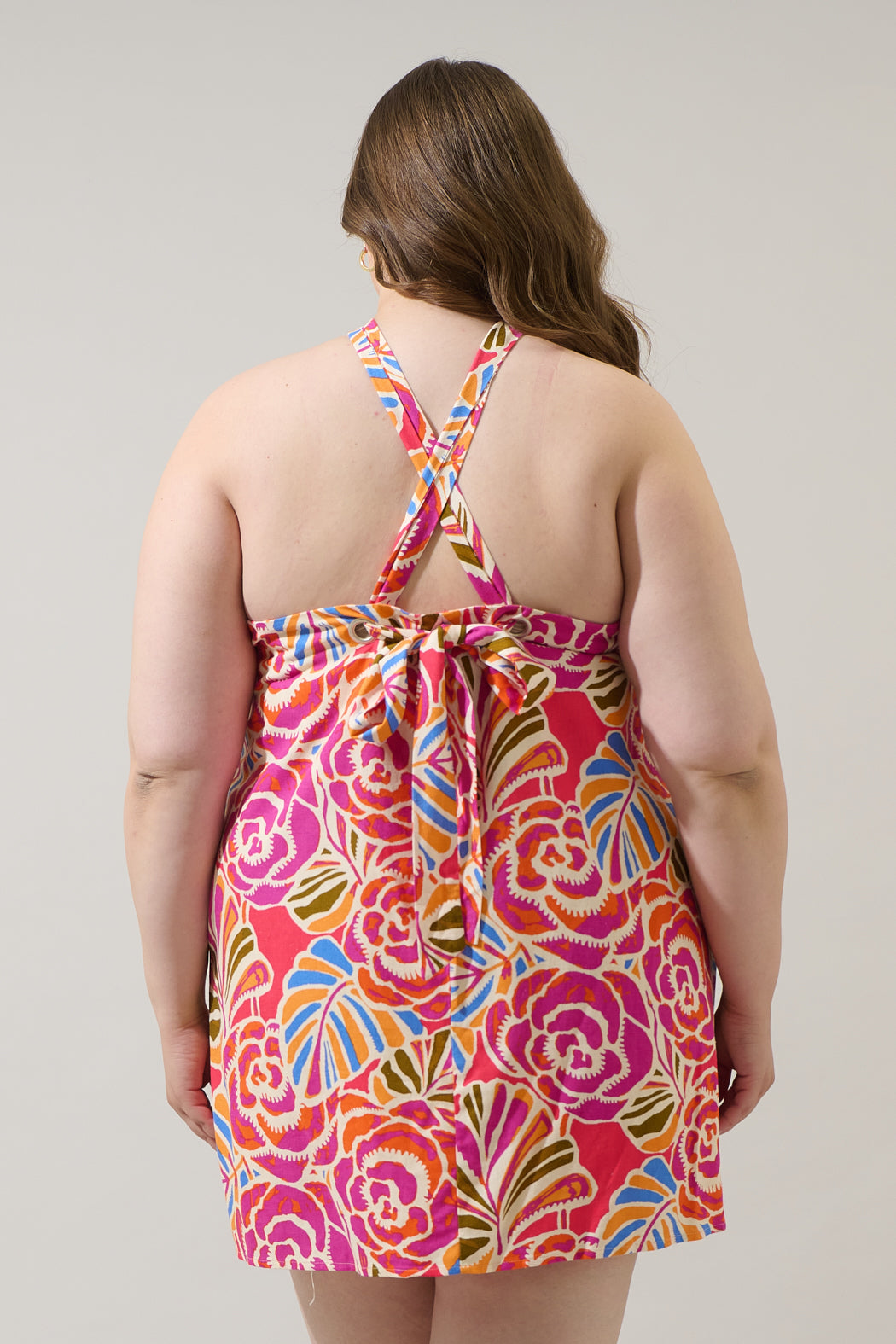 Step into sunshine with this charming Nomi Floral Amory Halter Mini Dress. A halter neck leads to a criss cross back tie. It is open from the sleeves and from the back. Style it with strappy sandals and a cute headband.