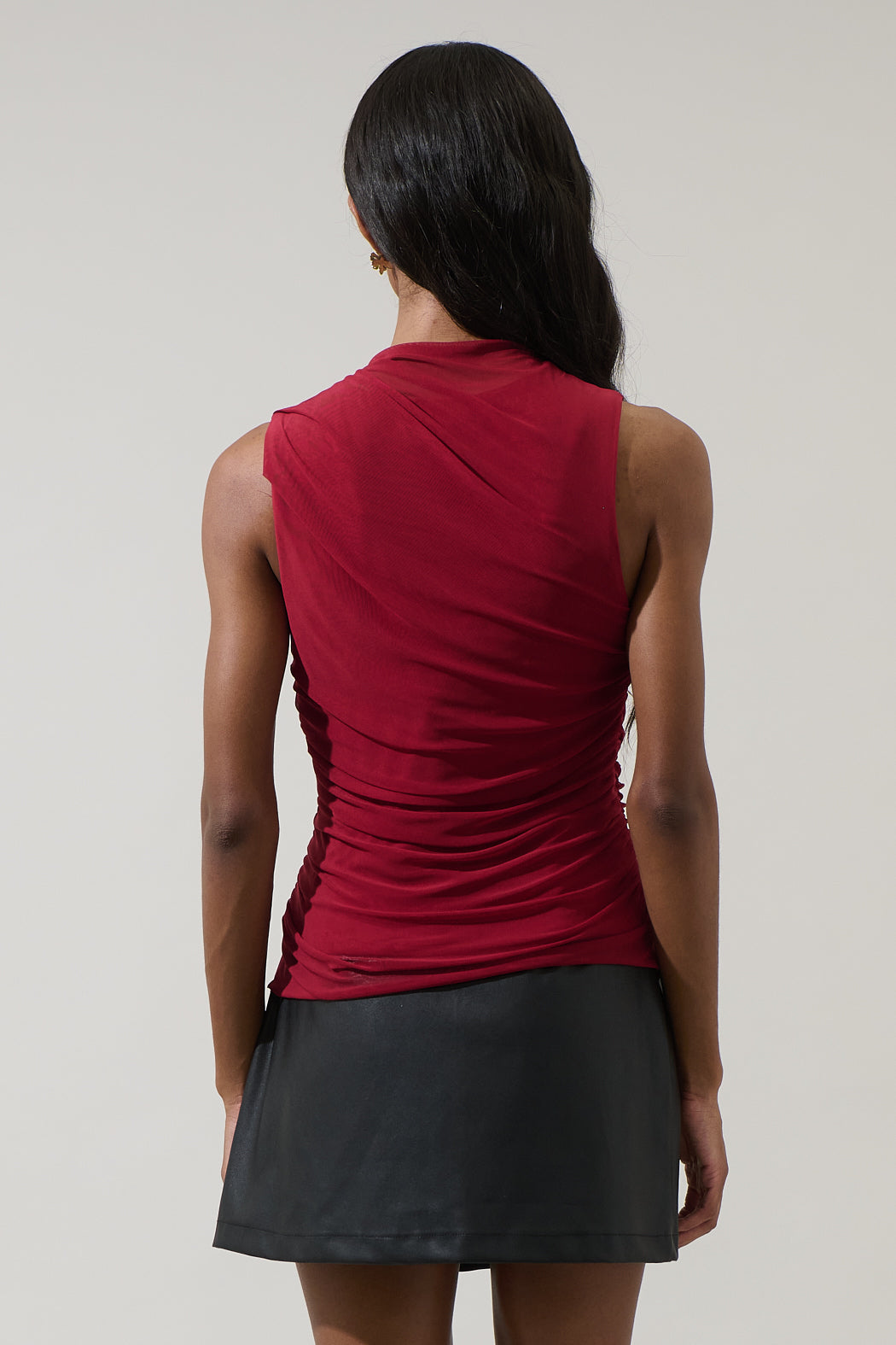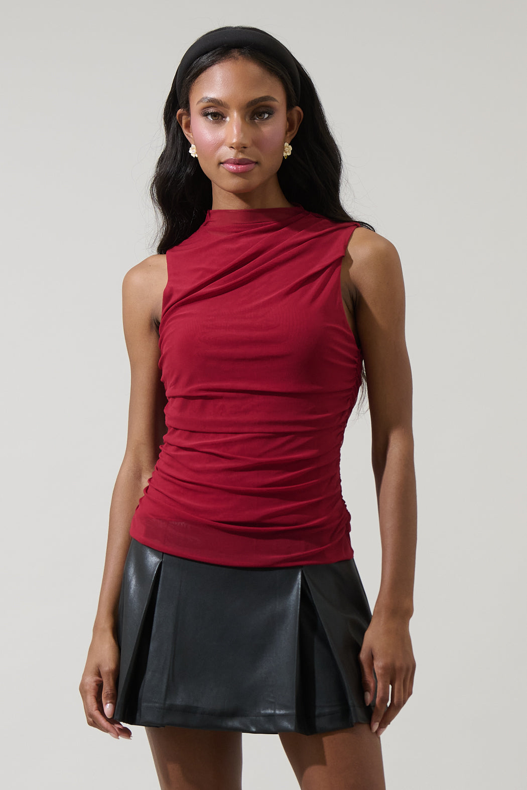 Elevate your look with this elegant blouse. Featuring a sleeveless design, slim fit, delicate ruching, and a lined finish, it’s designed to flatter every curve. Style it with tailored pants or edgy faux leather pants and bold earrings for a polished, chic look.