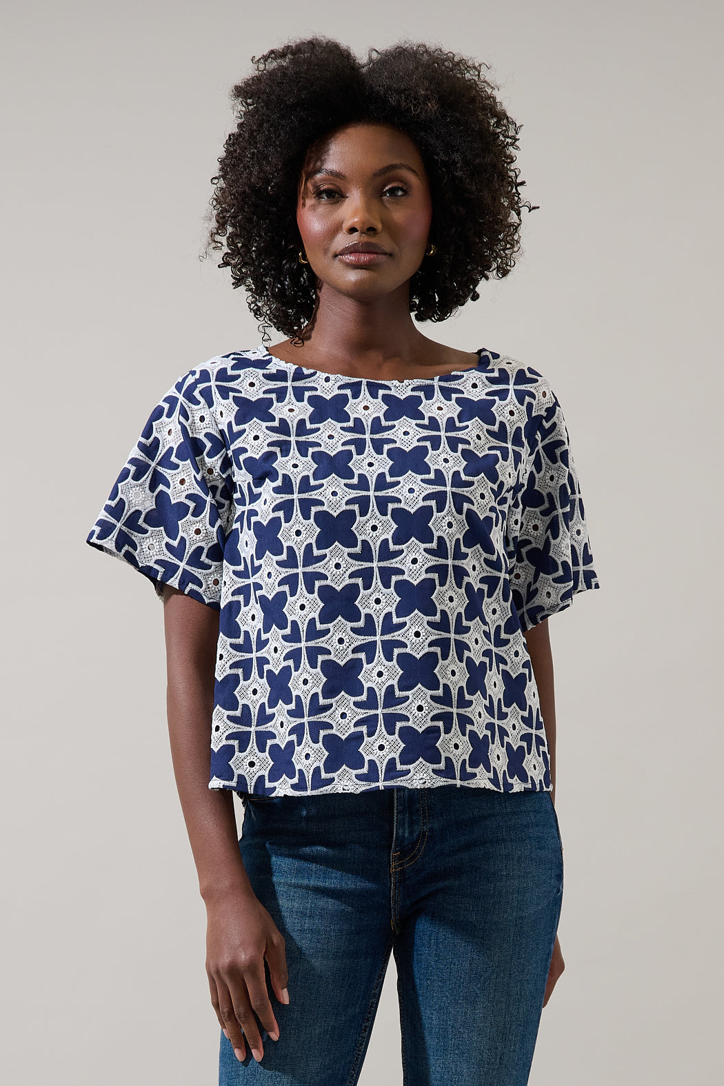 Sarly Eyelet Short Sleeve Cropped Top