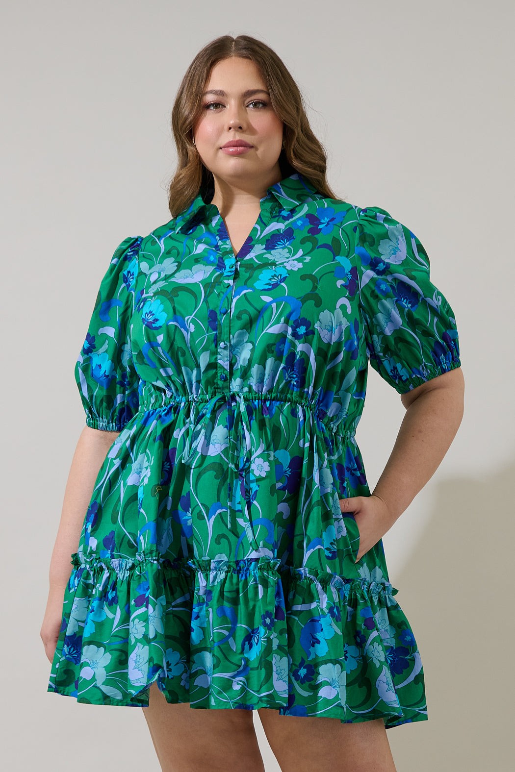 Stacie Button Down Mini Dress Lomeli Floral Curve