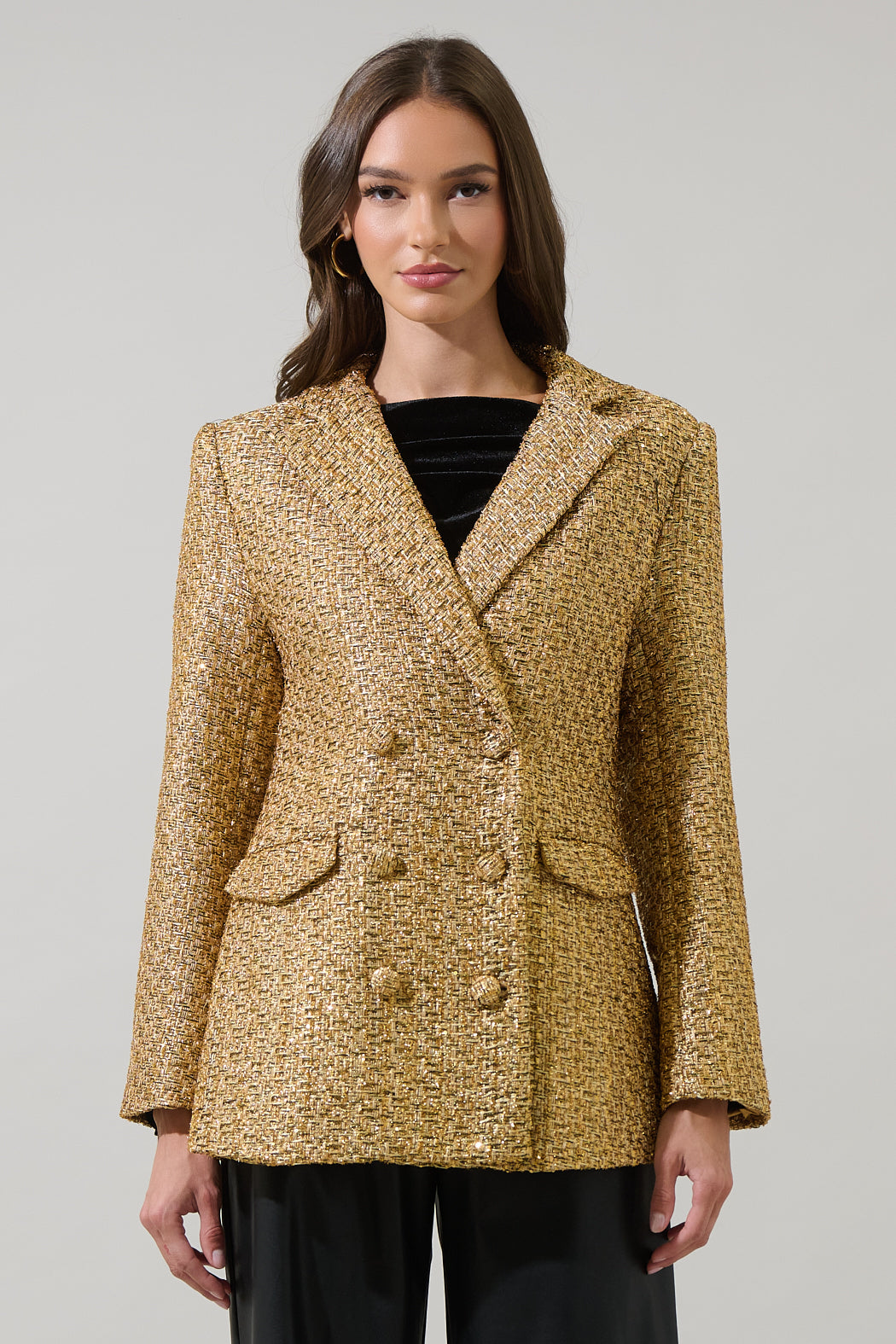 Elevate your everyday style with timeless sophistication. This tweed blazer features a classic lapel collar, detailed front pockets, and long sleeves for a polished finish. Pair it with tailored pants, pointed-toe heels, and a structured handbag for a look that’s effortlessly chic.