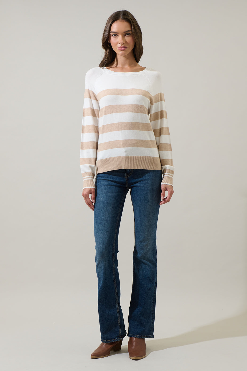 Get a pretty feeling every time you wear the Macy Hill Color Block Striped Sweater. A classic stripped pattern frames long sleeves with ribbed cuffs. A round neckline adds comfort and ease of wear. Pair it with some jeans and sneakers for a super casual fit.