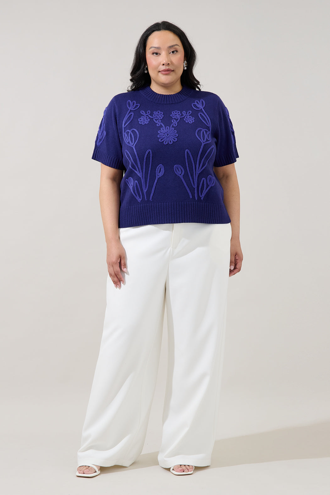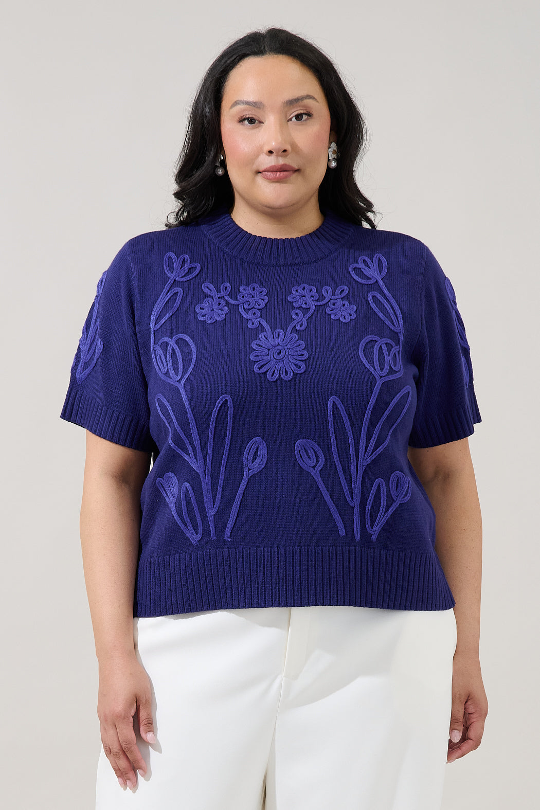 Winsley Floral Embroidered Sweater Top Curve