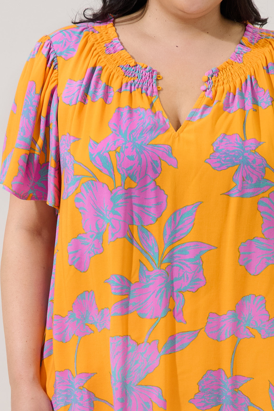 Regine Smocked Short Sleeve Top Floral Curve