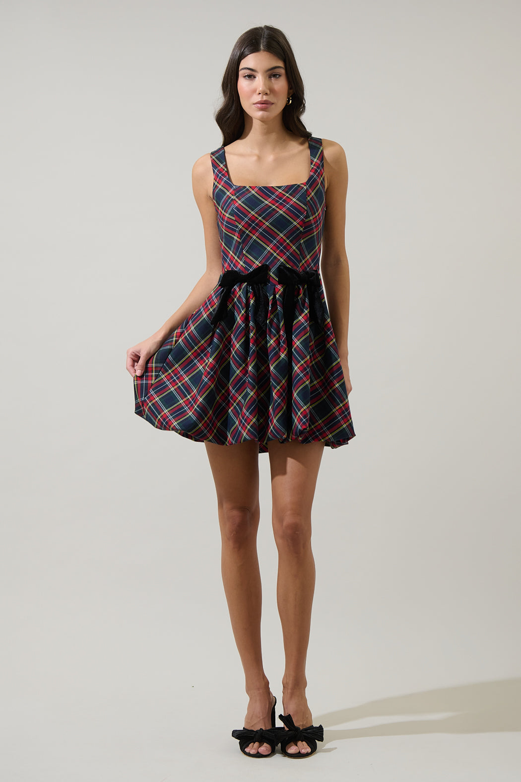 Turn up the cuteness factor with this stylish dress. This plaid mini features a sleeveless cut, front waist bows, and a smocked back for comfort. A side invisible zipper keeps it sleek, while the bubble hem adds playful flair. Perfect for parties or casual gatherings—pair with heels and a chic clutch.