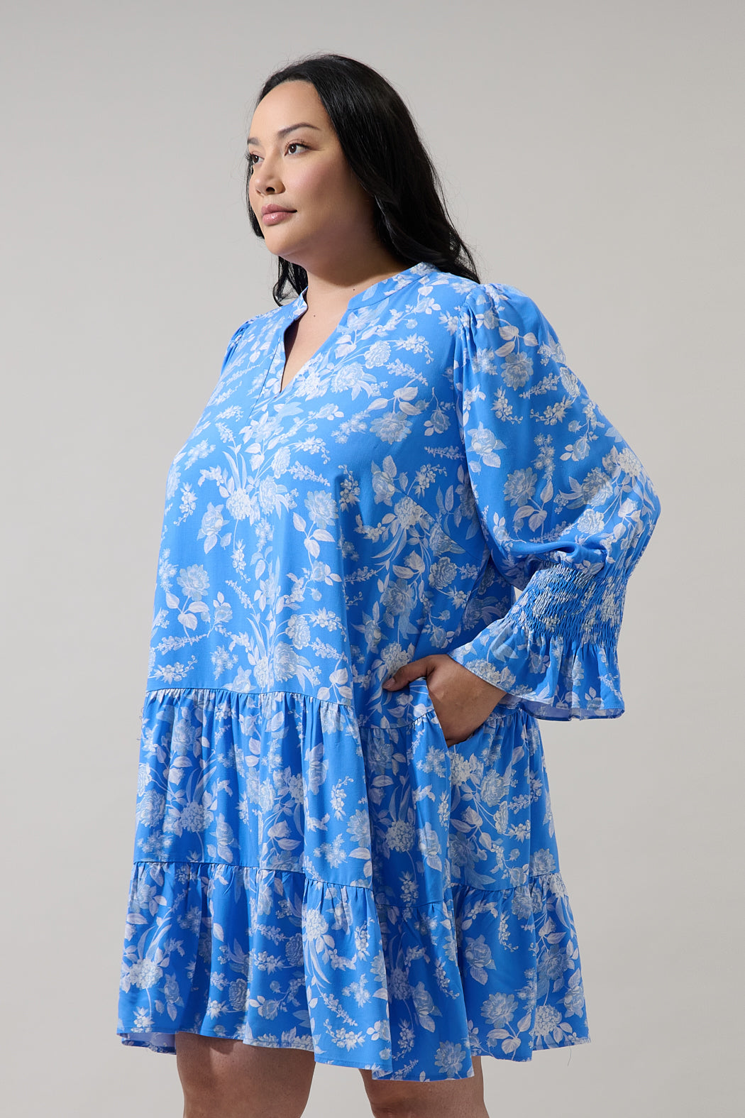 You will love how well the Odella Floral Anamy Shift Mini Dress fits you. It features long sleeves with a smocked detail at the middle. A split neckline tops a relaxed bodice with a ruffle drop waist. Keep it casual and pair the look with sandals.