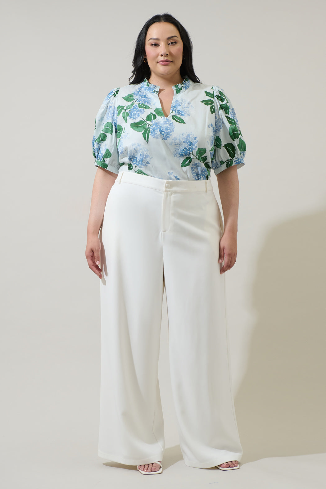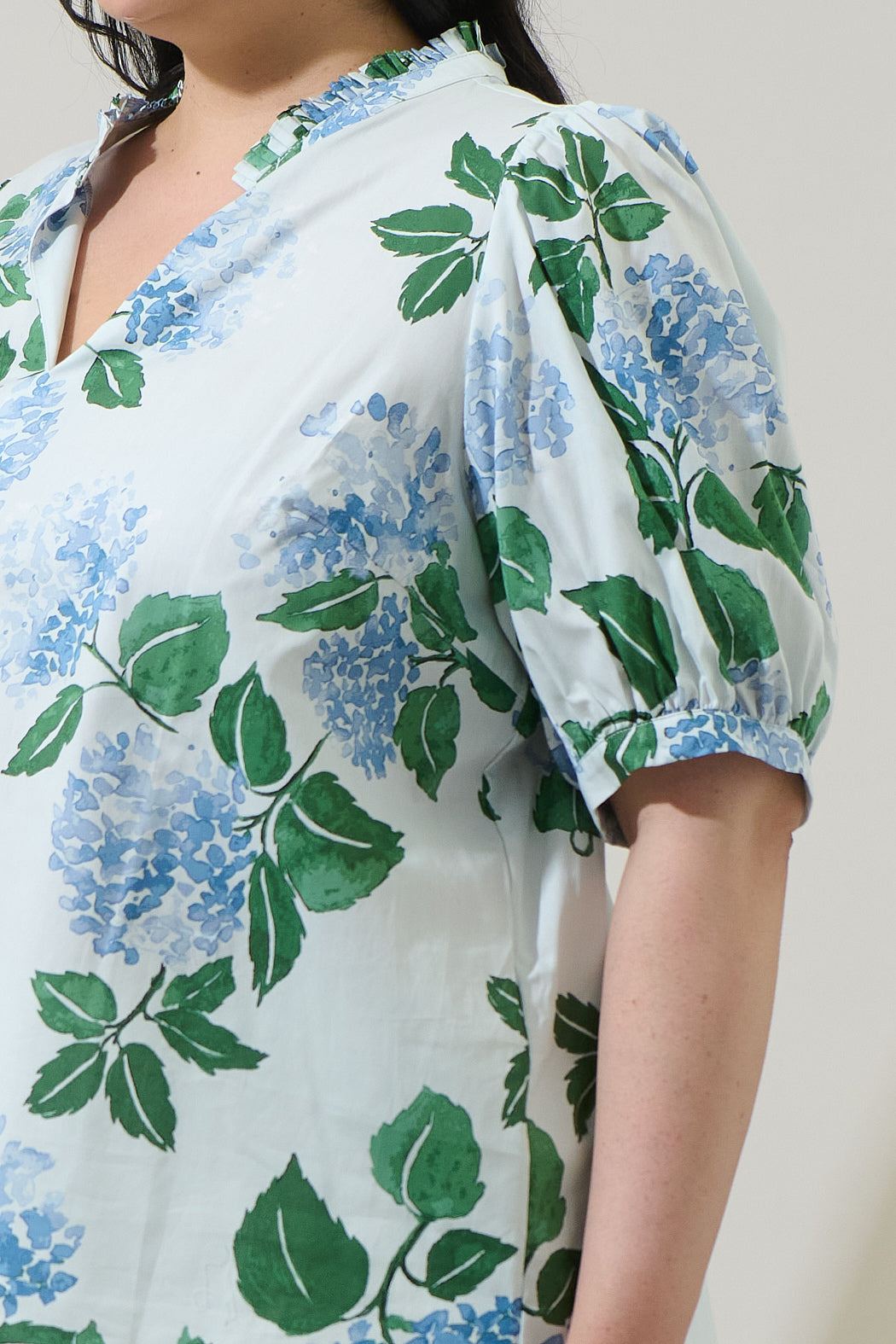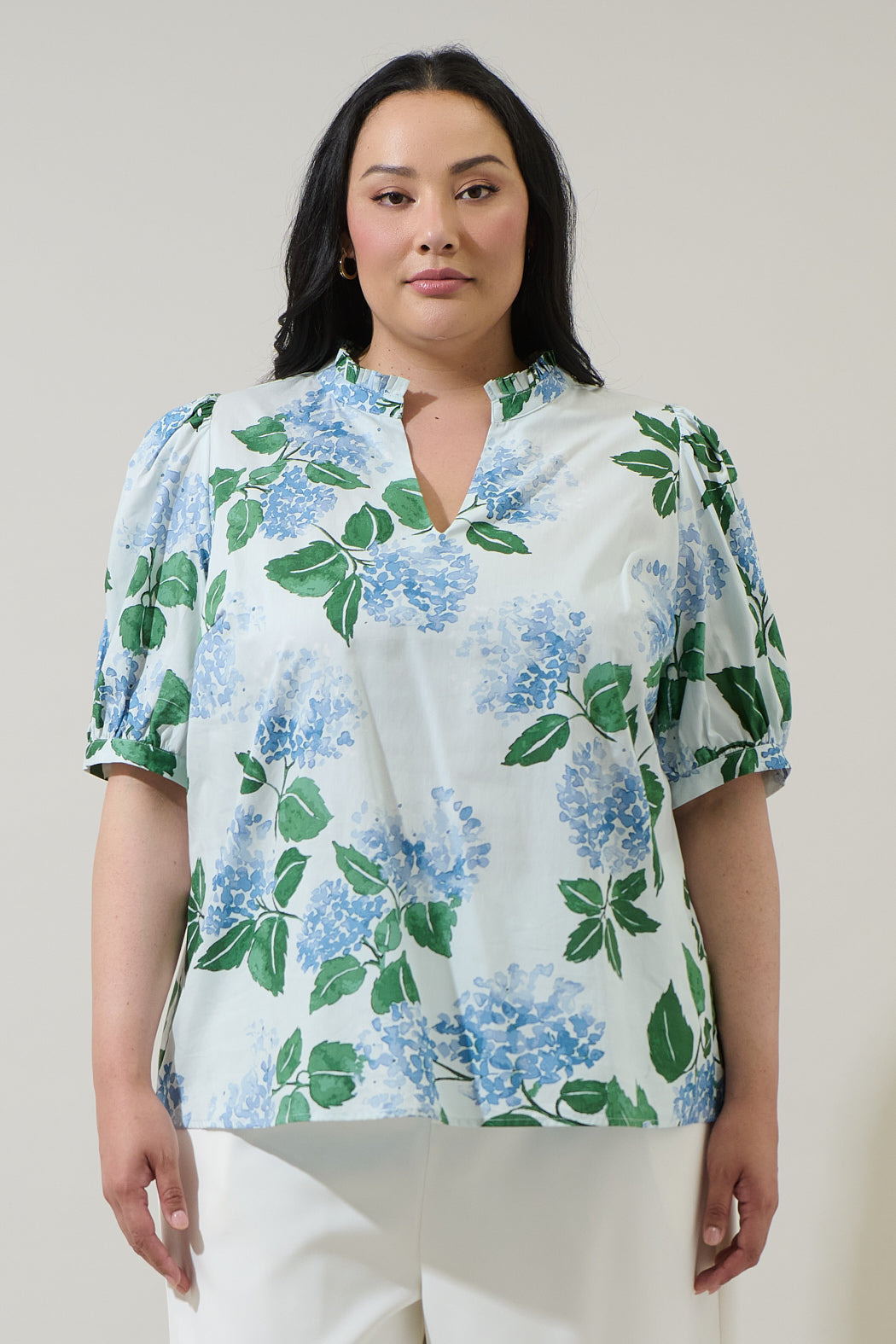 Start your day off in the Mirla Floral Terri Puff Sleeve Top. Features a split front neckline with ruffles around the neck. The short puff sleeves make it extra cute. Style it with shorts or high waisted pants.