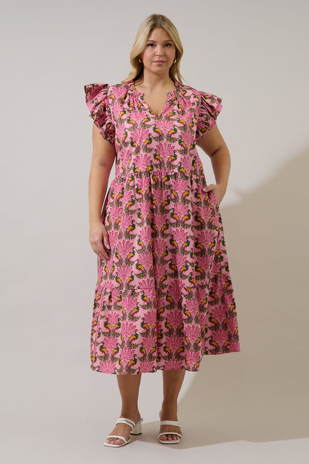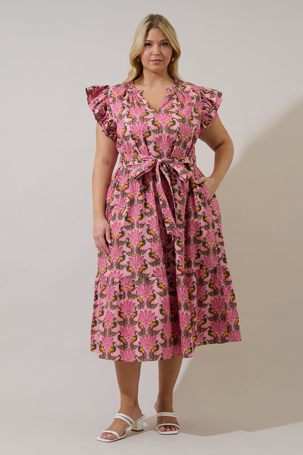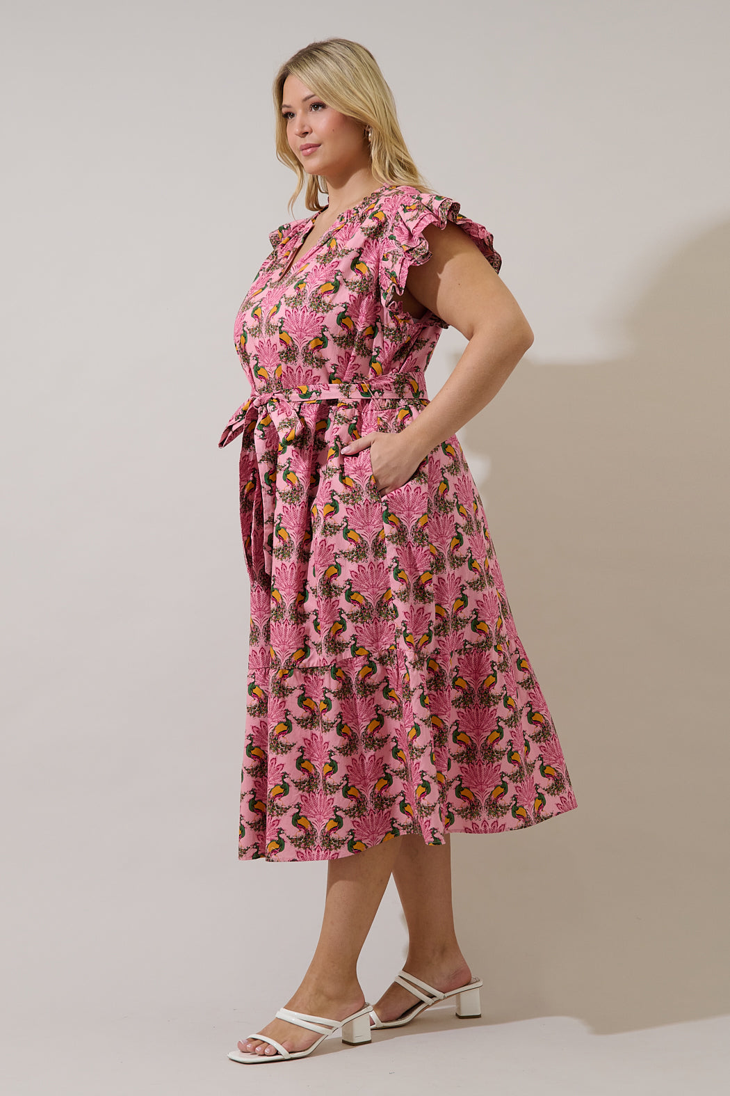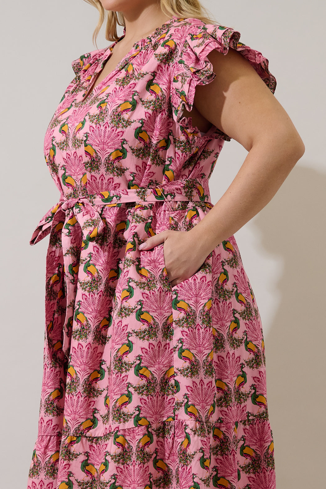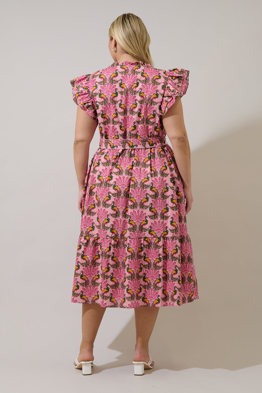 Sita Ruffle Midi Dress Peacock Bay Curve