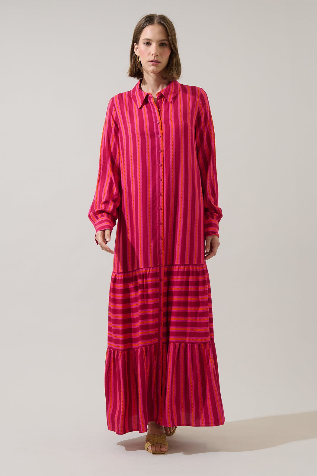 Clarisa Stripes Sofia Button Down Maxi Dress