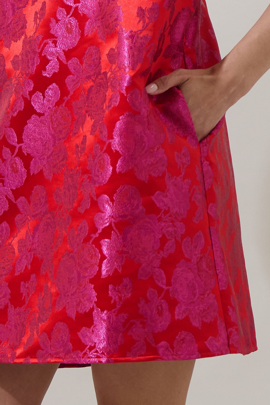 Make every outing feel special with a look that naturally draws admiration. This mini dress features a rounded bib neck, half oversized balloon sleeves, functional side pockets, jacquard fabric, and a delicate floral pattern. Complete the outfit with strappy heels, a structured handbag, and minimal jewelry for a stylish, refined touch.