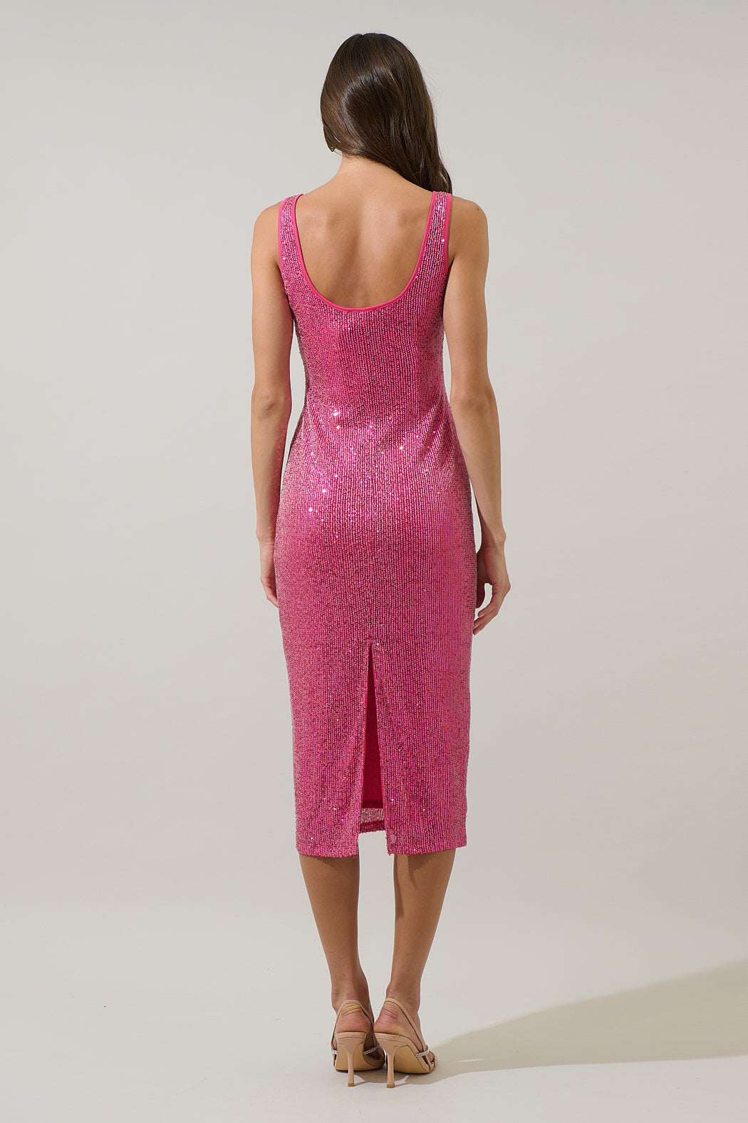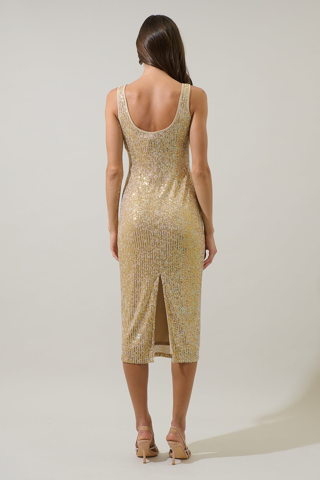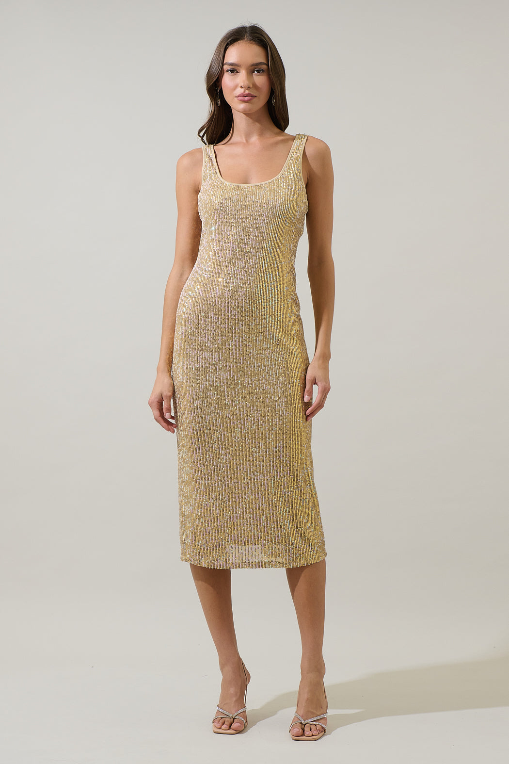 She’s shinning! The Kamari Sequin Liv Tank Midi Dress will have you looking your absolutely best. It features a deep scoop neckline in the back with an invisible zipper and slit. It creates a sleeveless style with tank top shoulder and ends in a midi length. Pair it with simple accessories.
