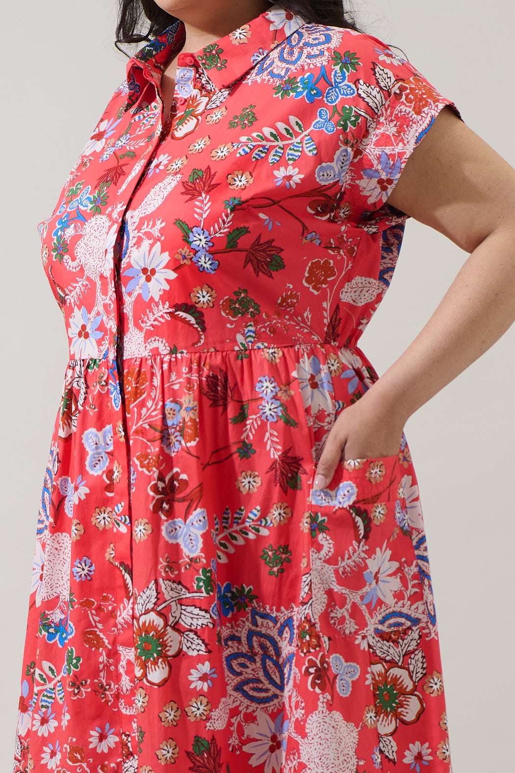 Oreanna Floral Grenola Button Up Midi Dress Curve