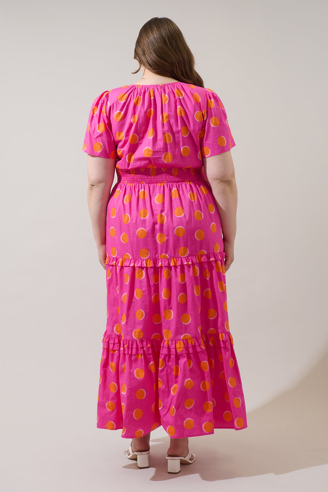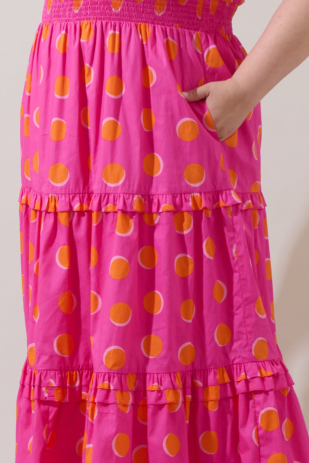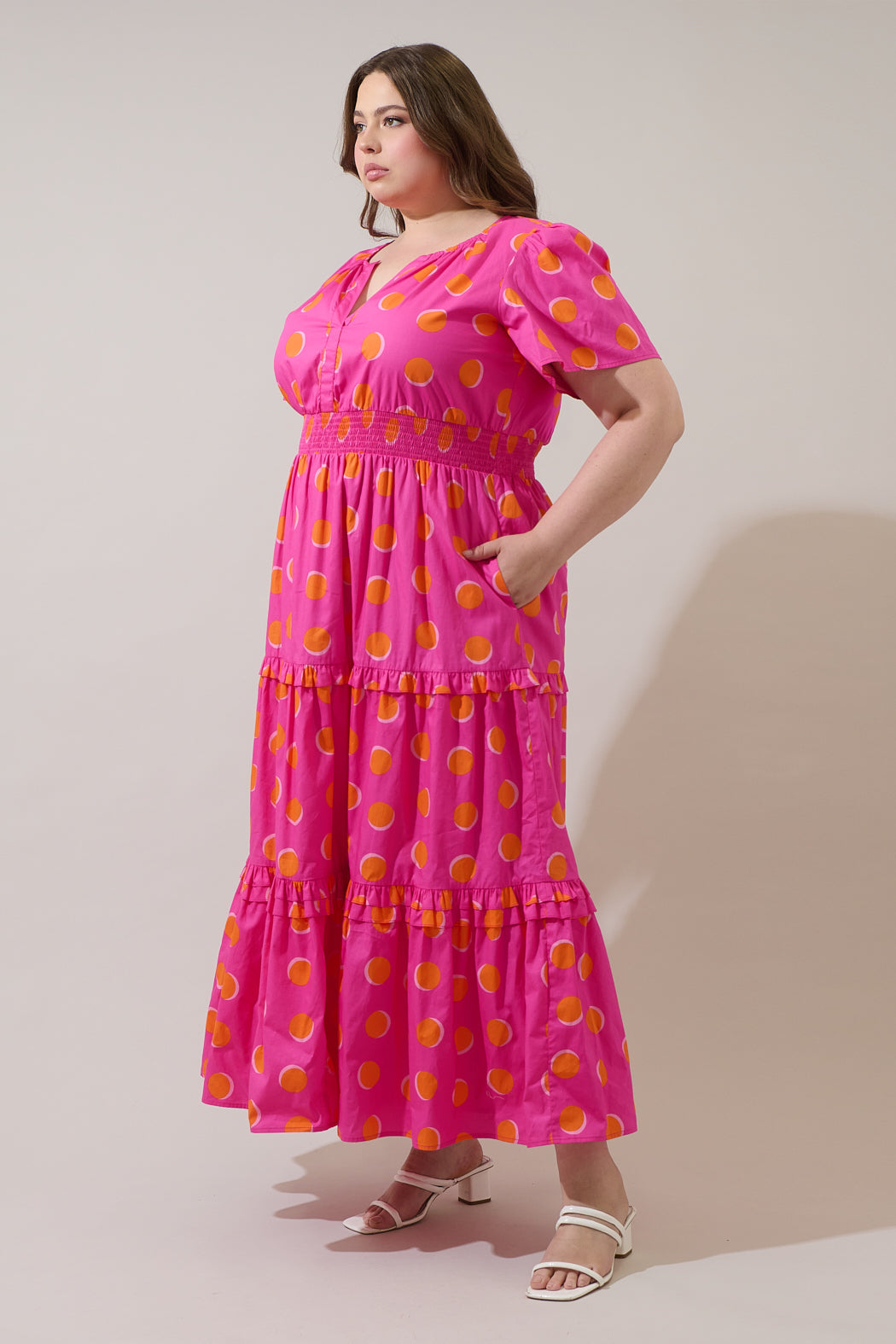 Rosy Polka Dot Palmer Poplin Tiered Maxi Dress Curve