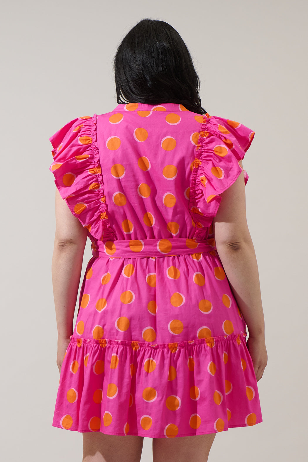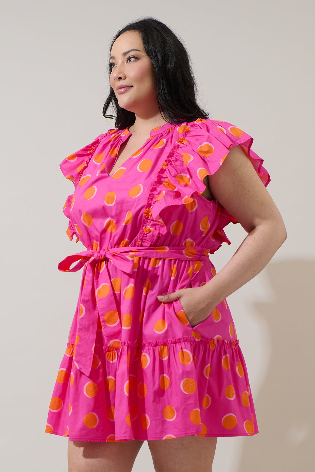 Rosy Polka Dot Ruffle Mini Dress Curve