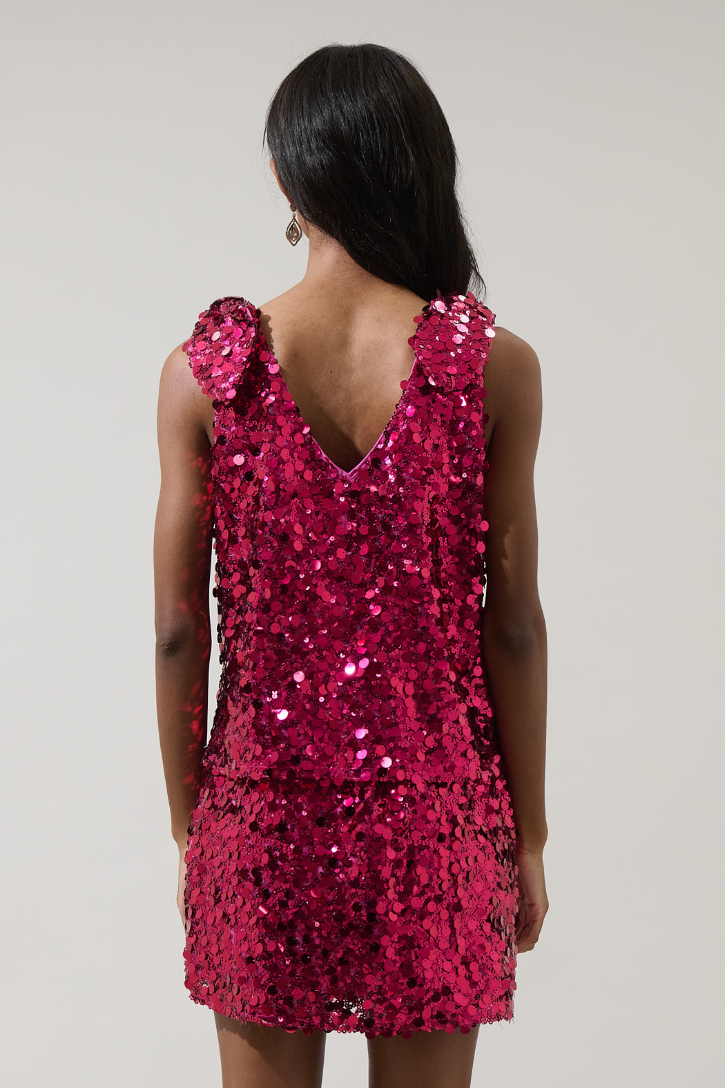 Shine bright with a touch of drama in this standout top. Covered in eye-catching sequins, it features a deep V-neckline, shoulder bow ties, and full lining for a comfortable fit. Pair it with the matching bottom for a head-turning set, then add heels and a sleek clutch to complete the look.