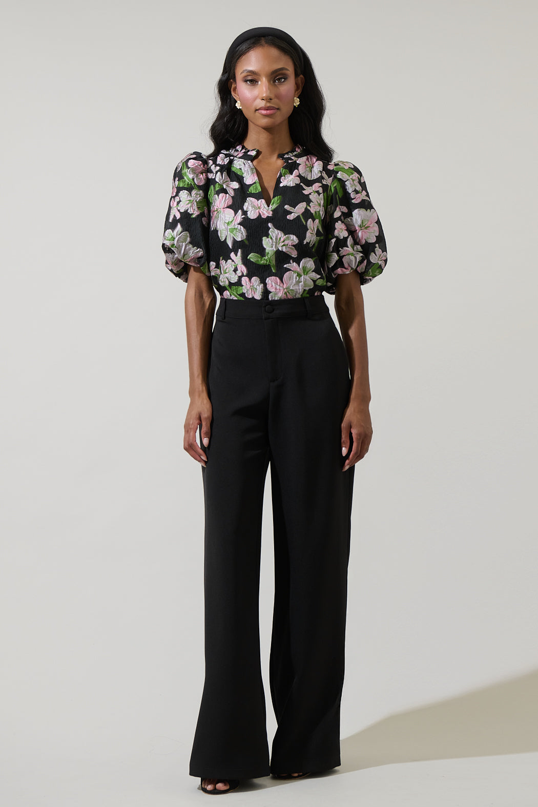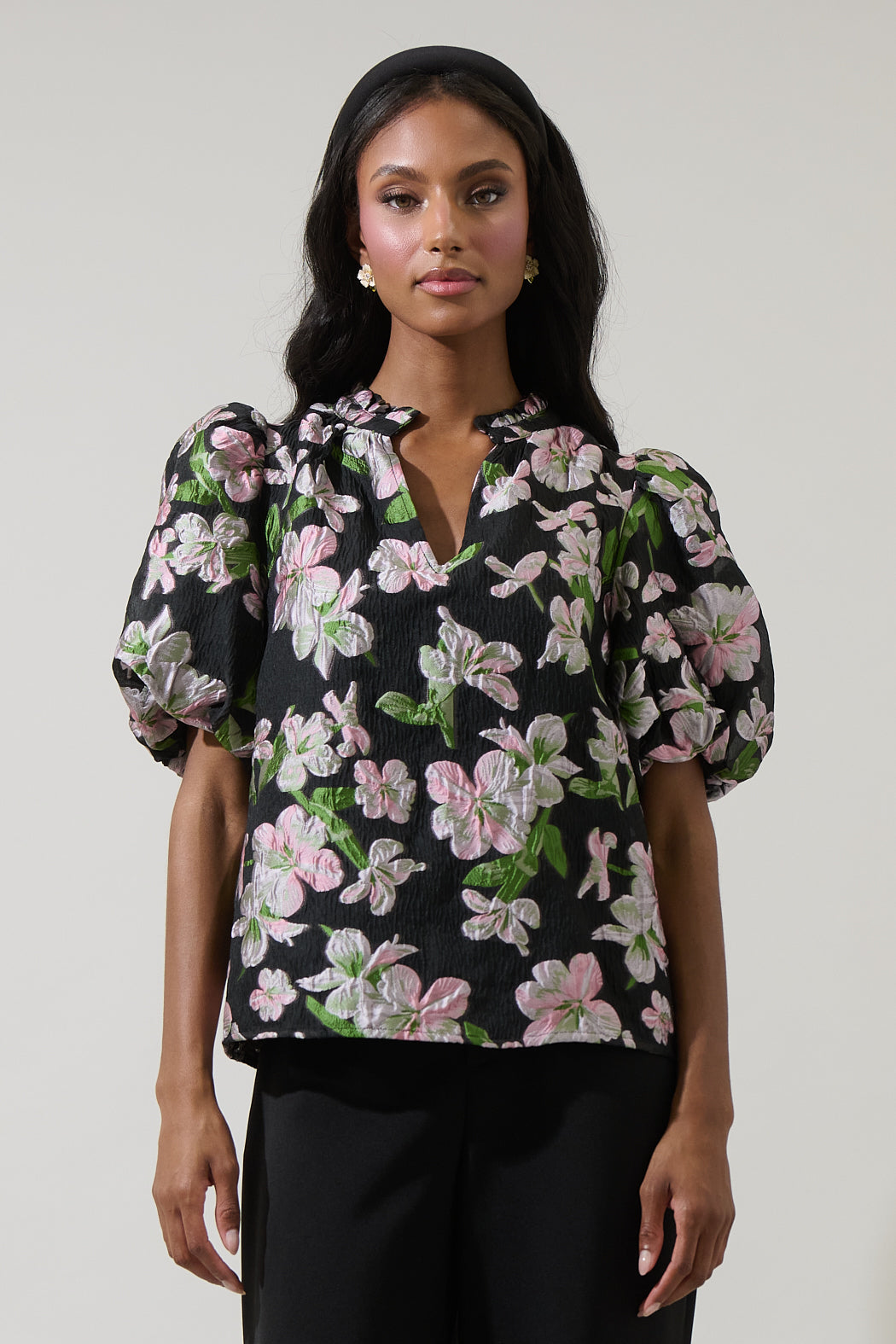 Elsinore Floral Jacquard Split Neck Top