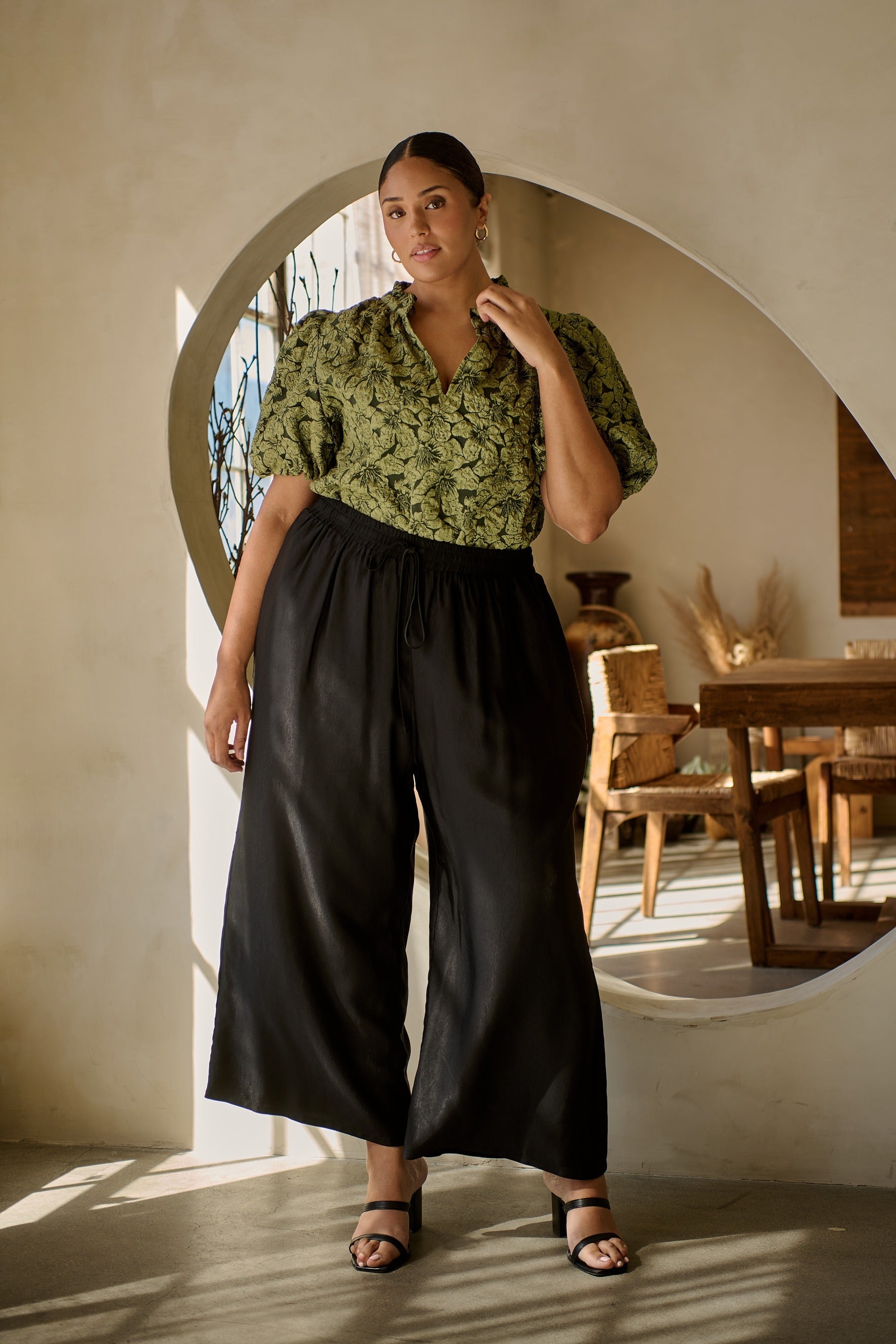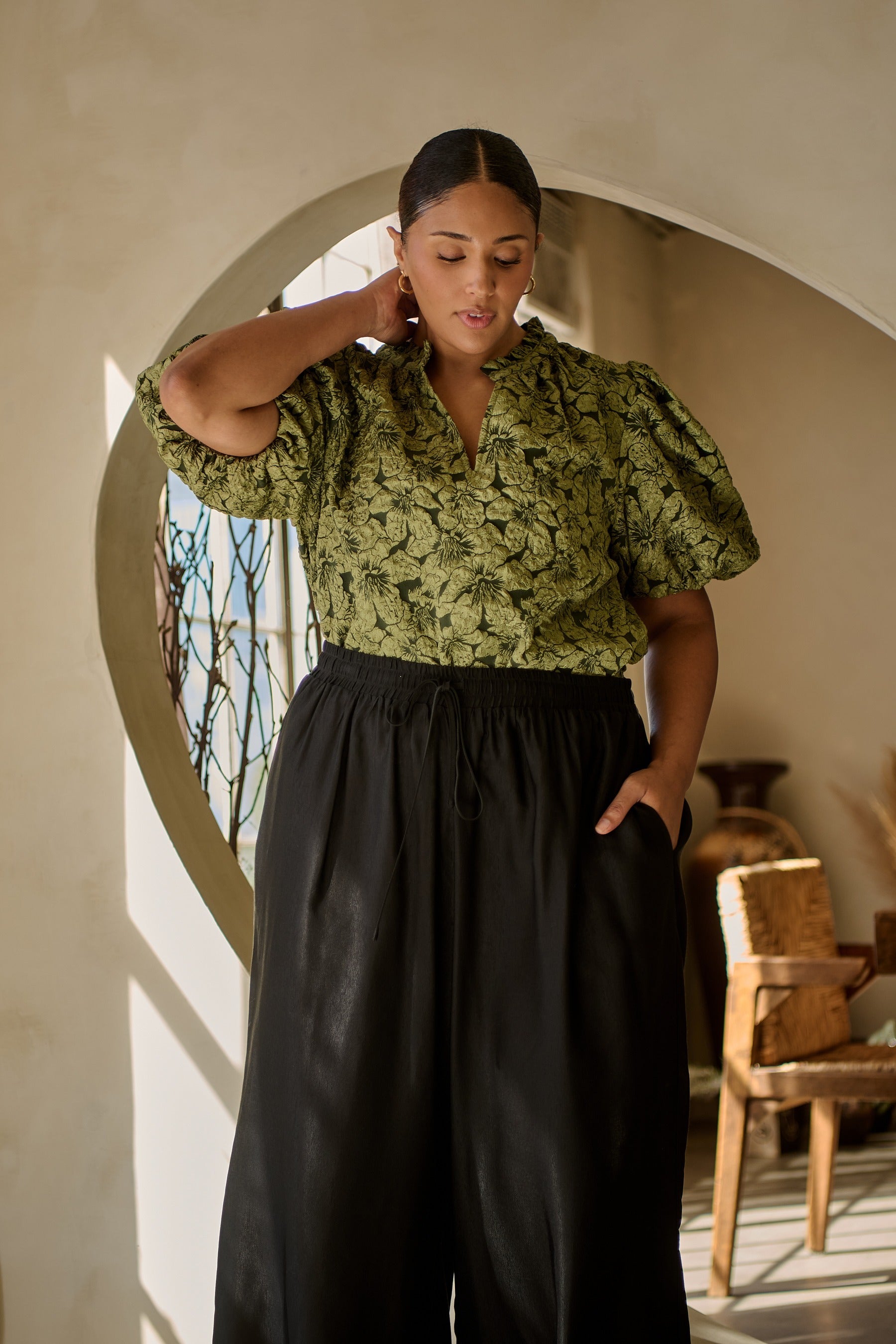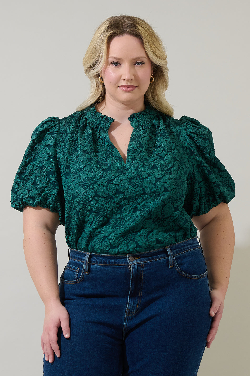 Transition through the seasons in style with the Arielle Jacquard Split Neck Top! It features a divine solid color print shapes this top that has a split neck V-neckline and short puff balloon sleeves with drop shoulders and elastic at the end. Pick your favorite color and pair it with any pants to get a cute chic look!