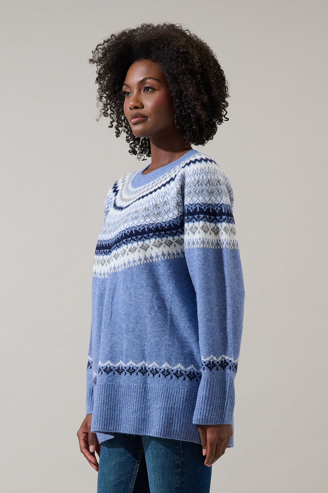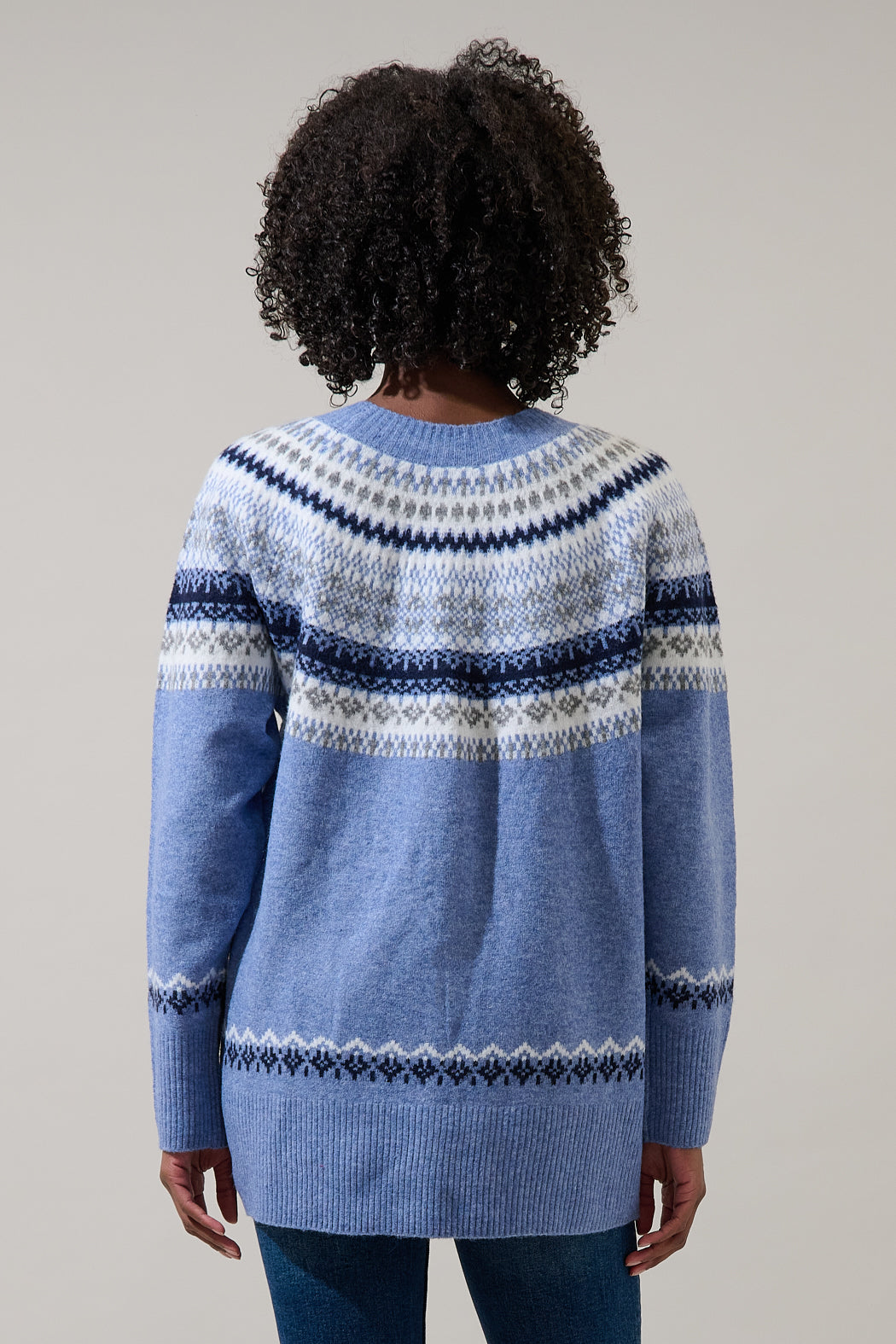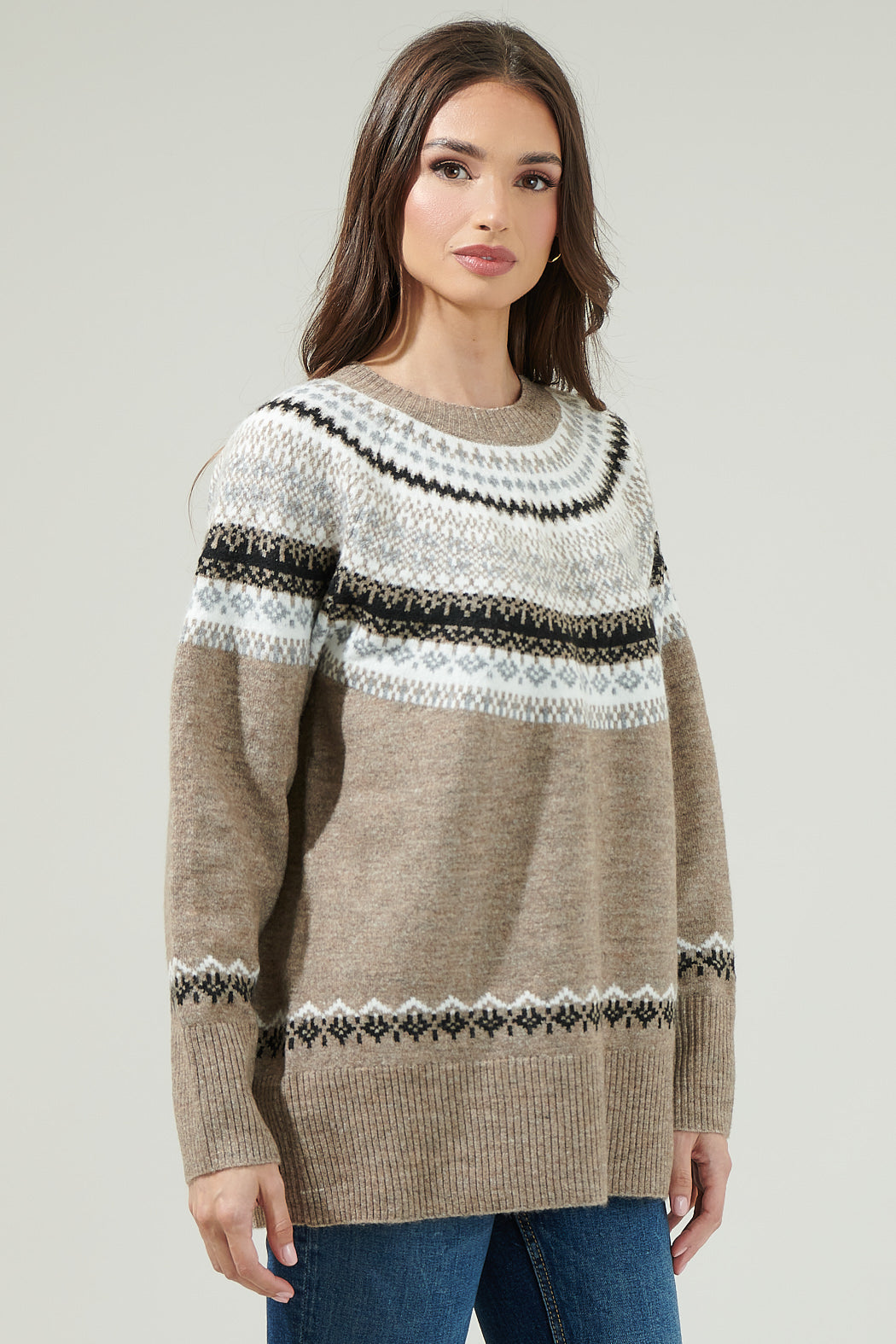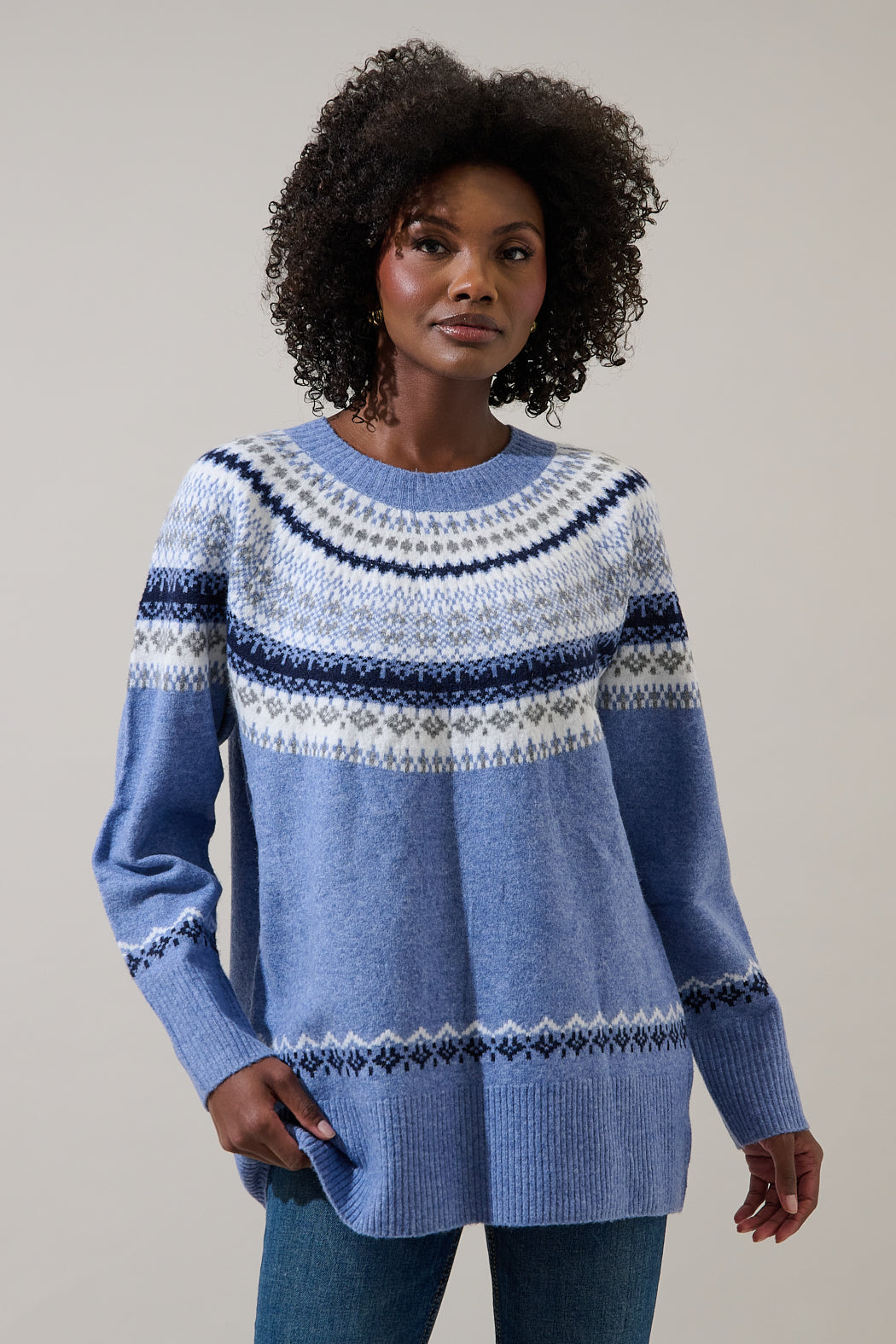 Comfy meets stylish in the McNeal Fair Isle Crewneck Sweater. A horizontal unique design lays on this ribbed knit sweater shapes crew neck neckline that tops long, balloon drop sleeves. It maintains a relaxed fit and can be styled tucked into bottoms of your choice.