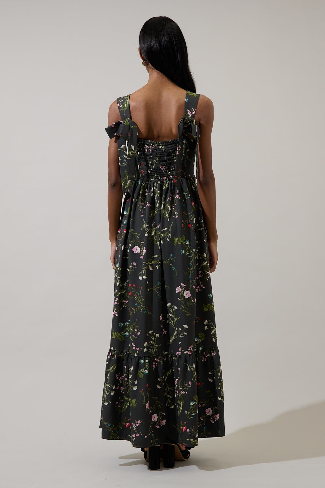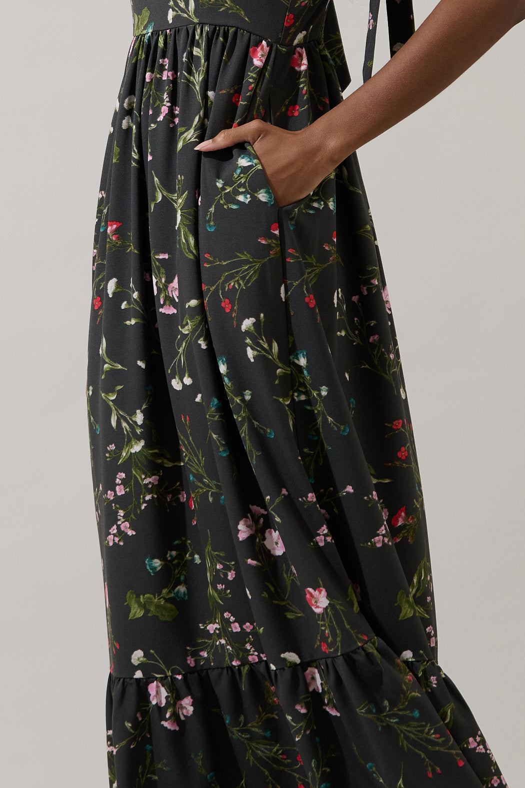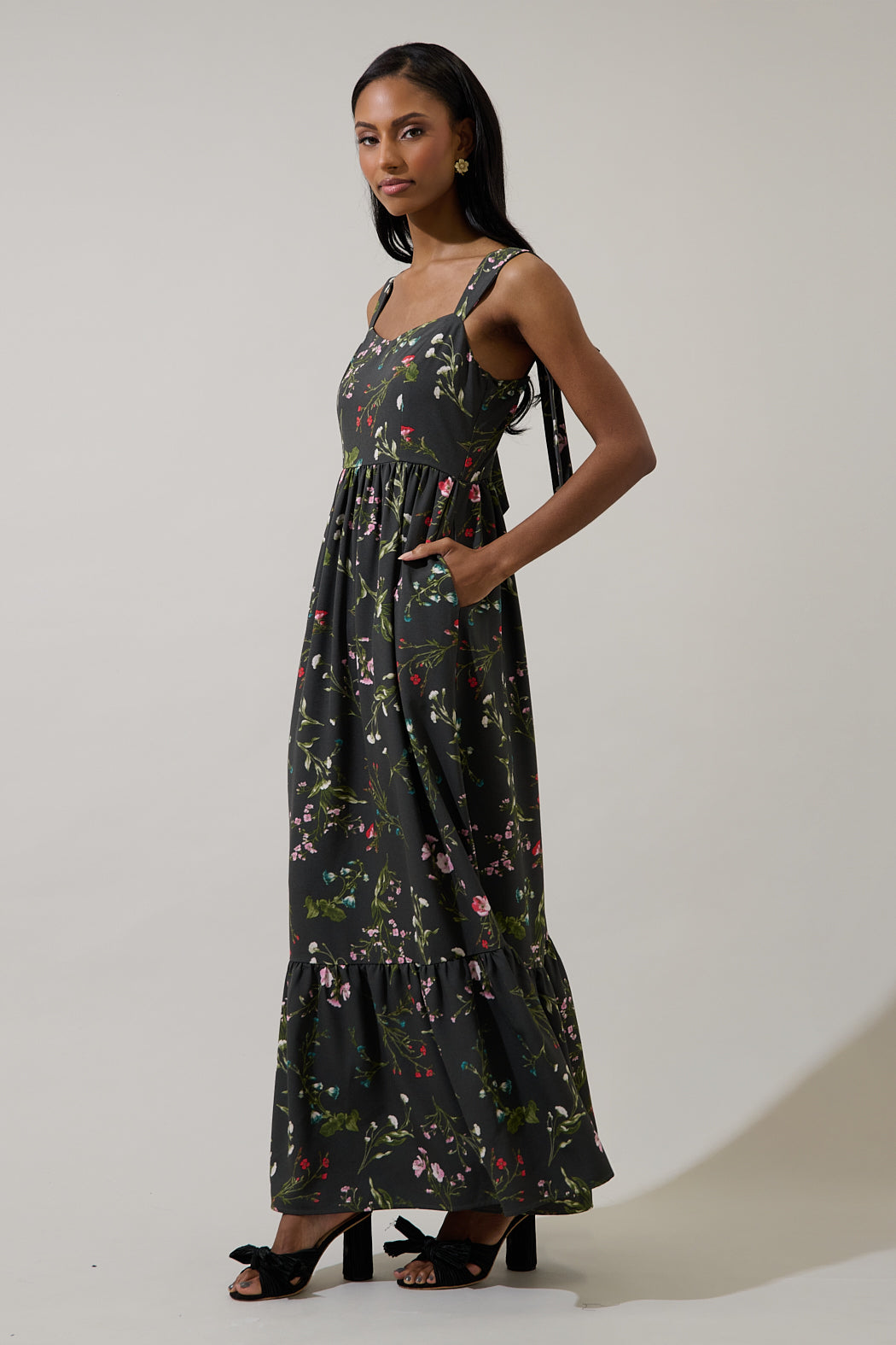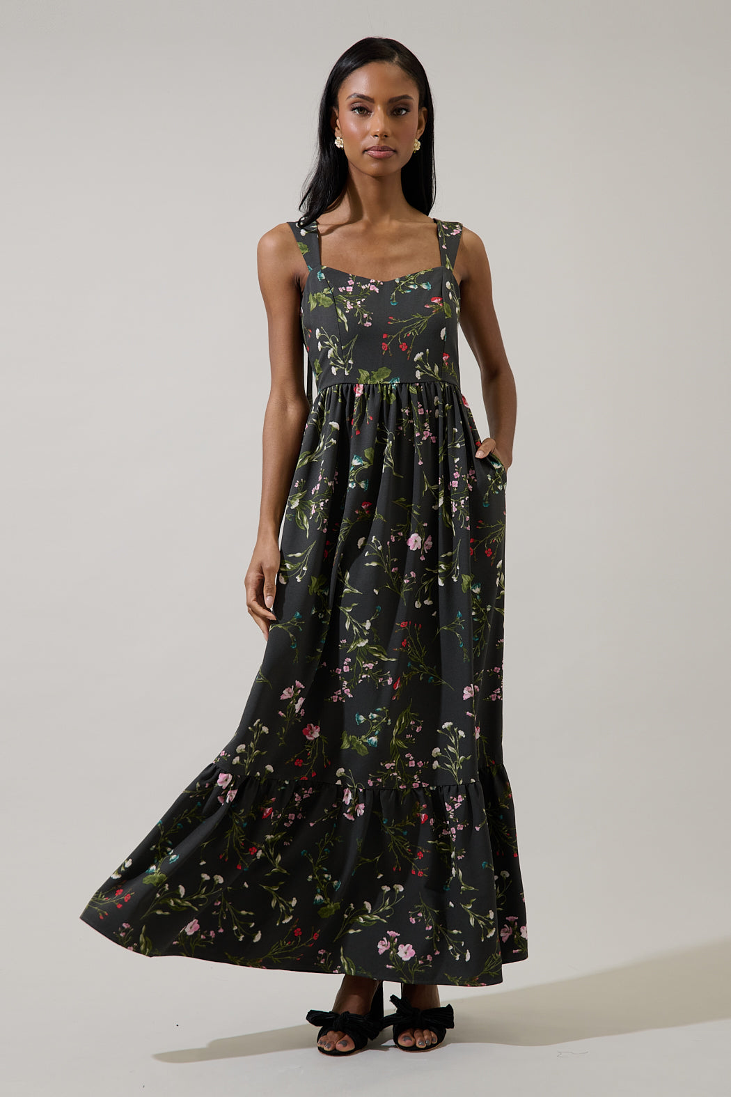 Delicate blooms meet a graceful dress for an endlessly romantic look. It features wide shoulder straps, a flattering square neckline, and a soft, flowy silhouette that moves beautifully with every step. The gathered waist and tiered hem add the perfect touch. Finished with side pockets, and pair it with heels.