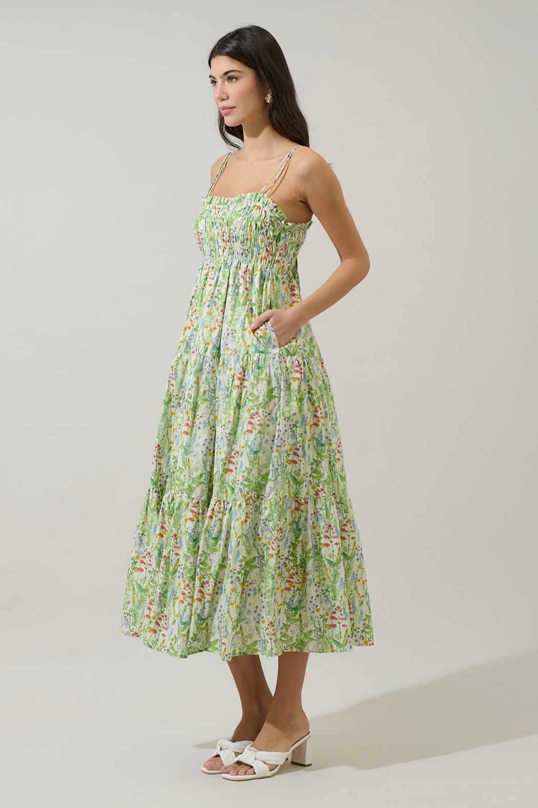 Abery Floral Gennie Smocked Tiered Midi Dress