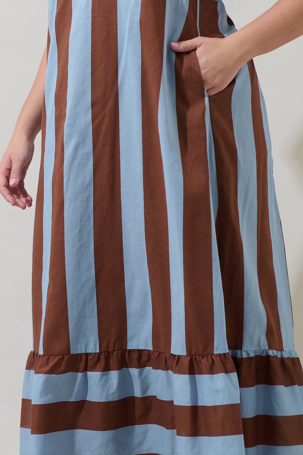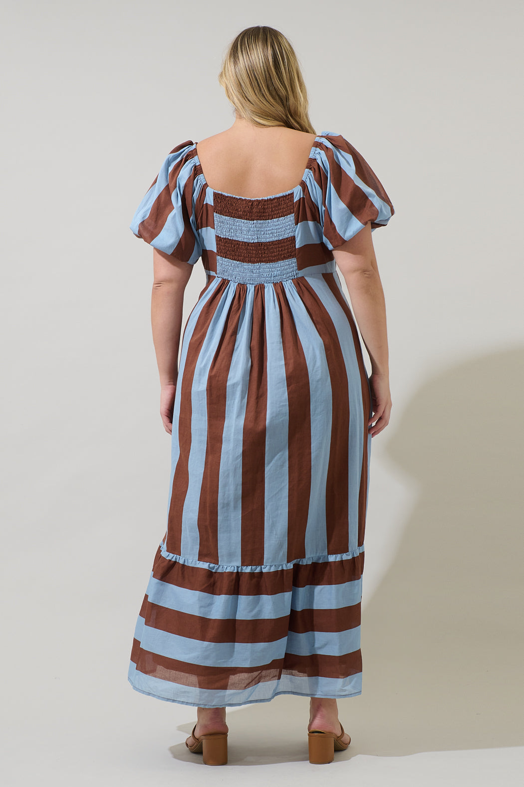 Evabelle Stripe Xena Puff Sleeve Maxi Dress Curve
