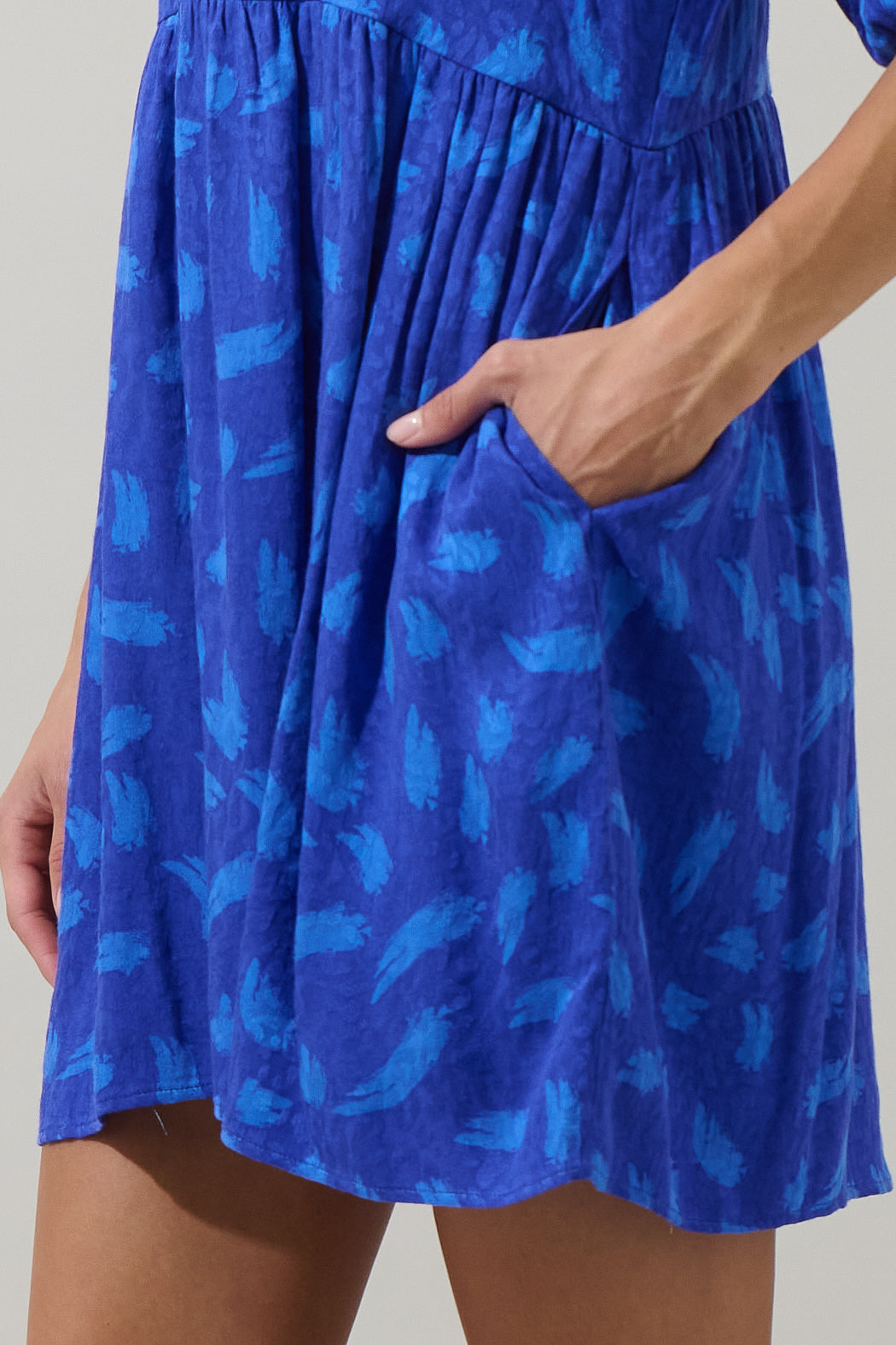 A fresh twist on this cute blue mini dress. It features a V-neck with short, flowy sleeves and a gathered seam below the bust, giving it a loose, tiered silhouette. It is effortless and comfortable, making it suitable for casual daytime wear or vacation.