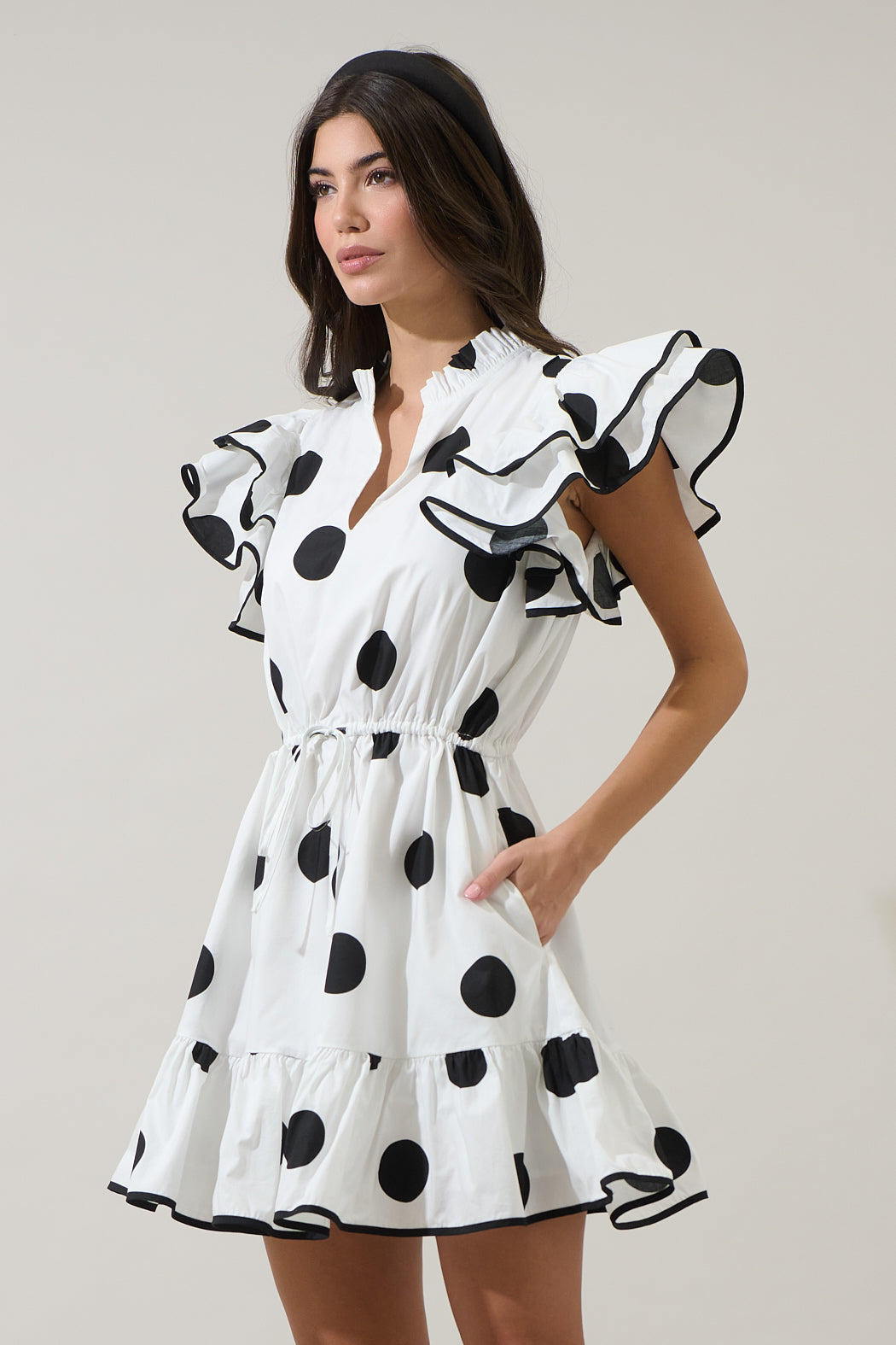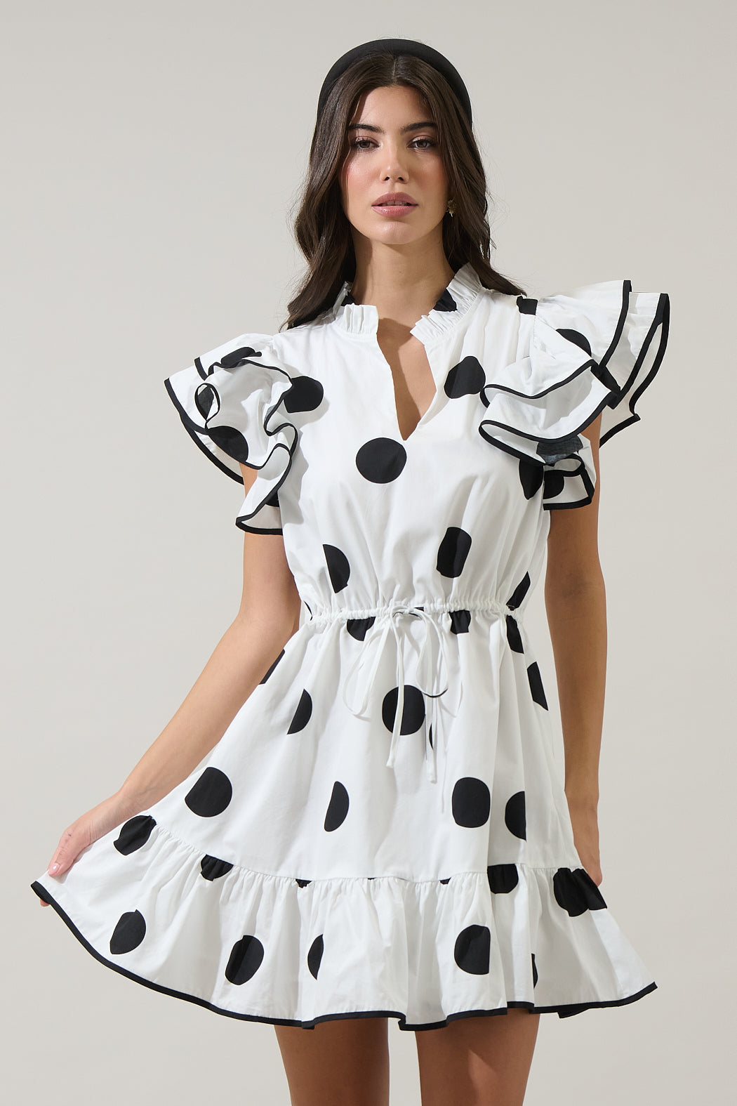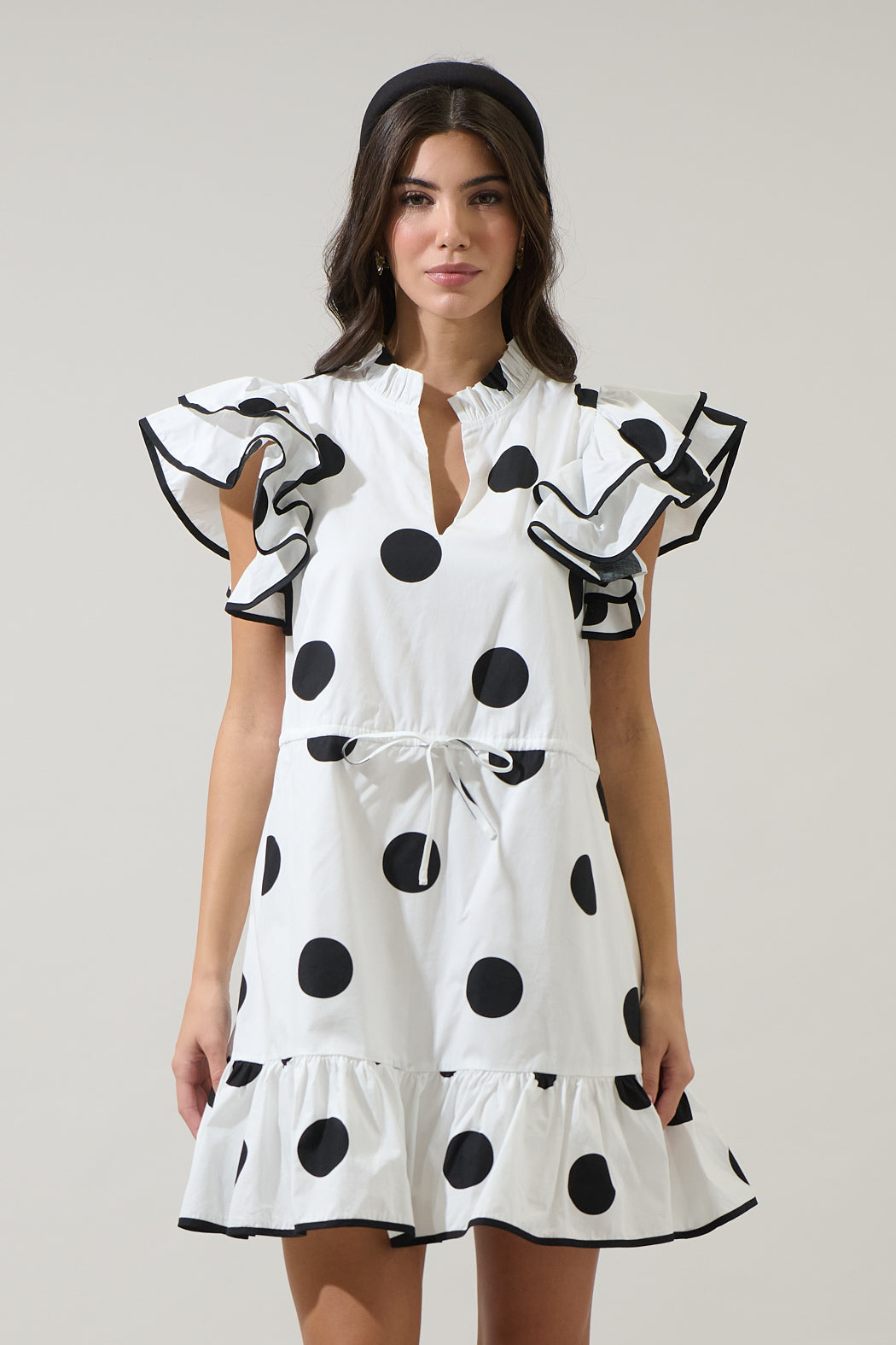 When in doubt, go with dots! This playful piece brings dramatic ruffles around the short sleeves frame split neckline with a mock ruffle neck. The bodice has a shift design and a drawstring belt around the waist. Pair it with strappy heels to complete your chic look!