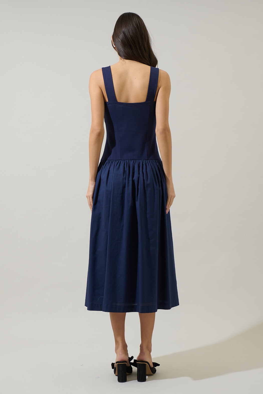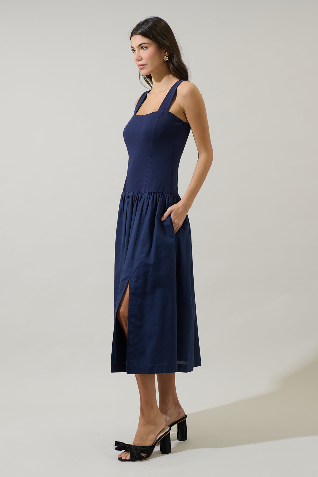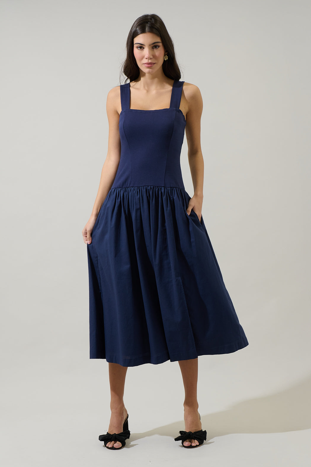A seasonal wardrobe essential that doesn't disappoint. It features a square neckline with wide, supportive straps and a tailored bodice that flows into a dropped waist. The voluminous gathered skirt adds a playful touch. Pair it with heels or sandals.