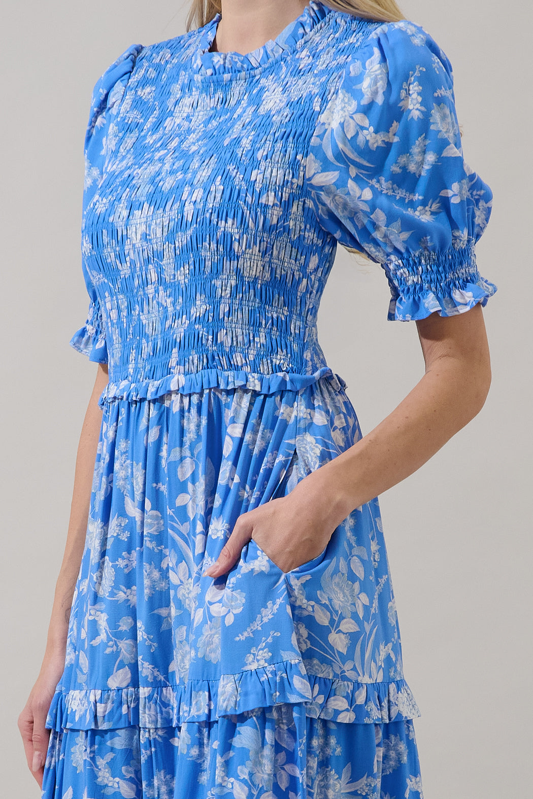 Odella Floral Analisa Smocked Midi Dress