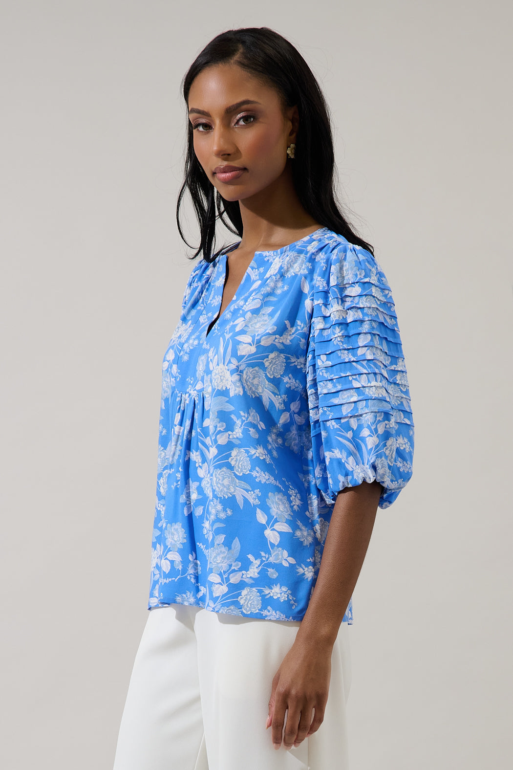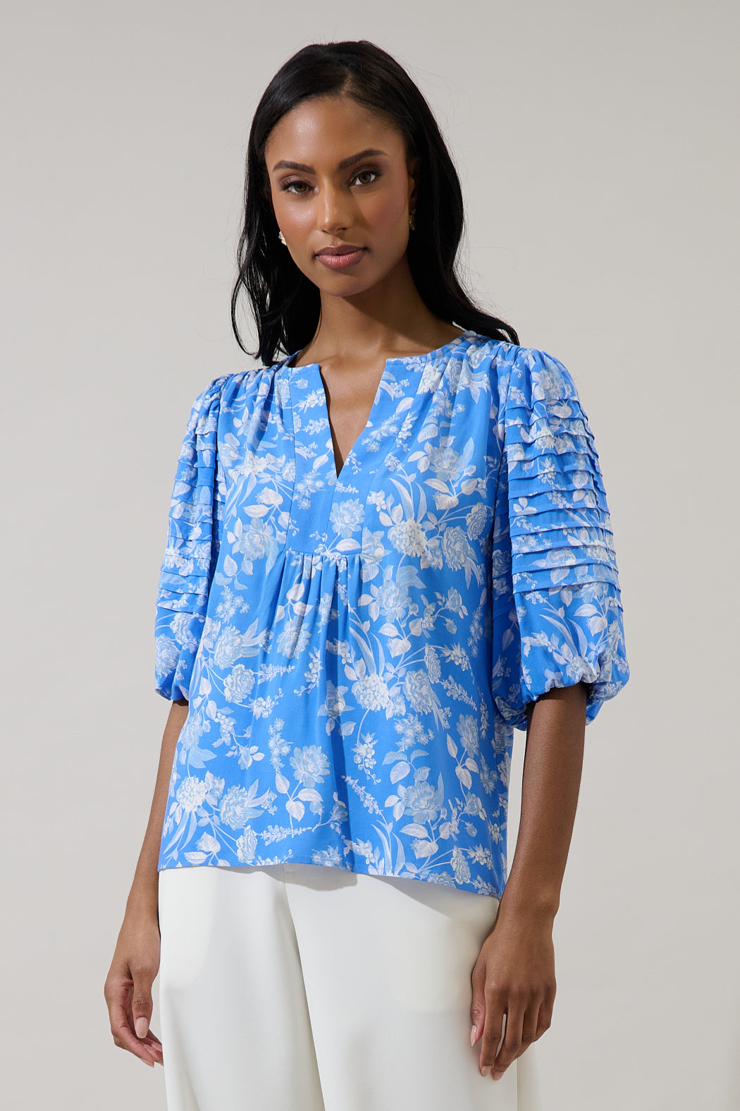Putting together a trendy fit is easy when you've got this top. Featuring a floral print and a split neck design that enhances its relaxed look. It has pleats on the short half sleeves. It pairs effortlessly with the matching shorts, for a complete outfit.