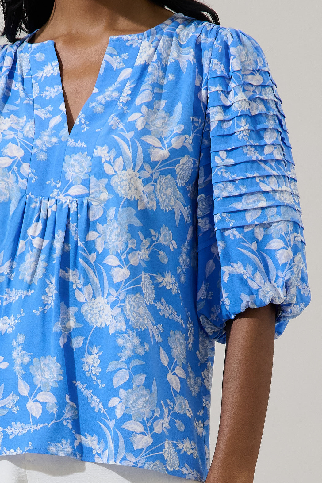Odella Floral Cerry Pleated Top