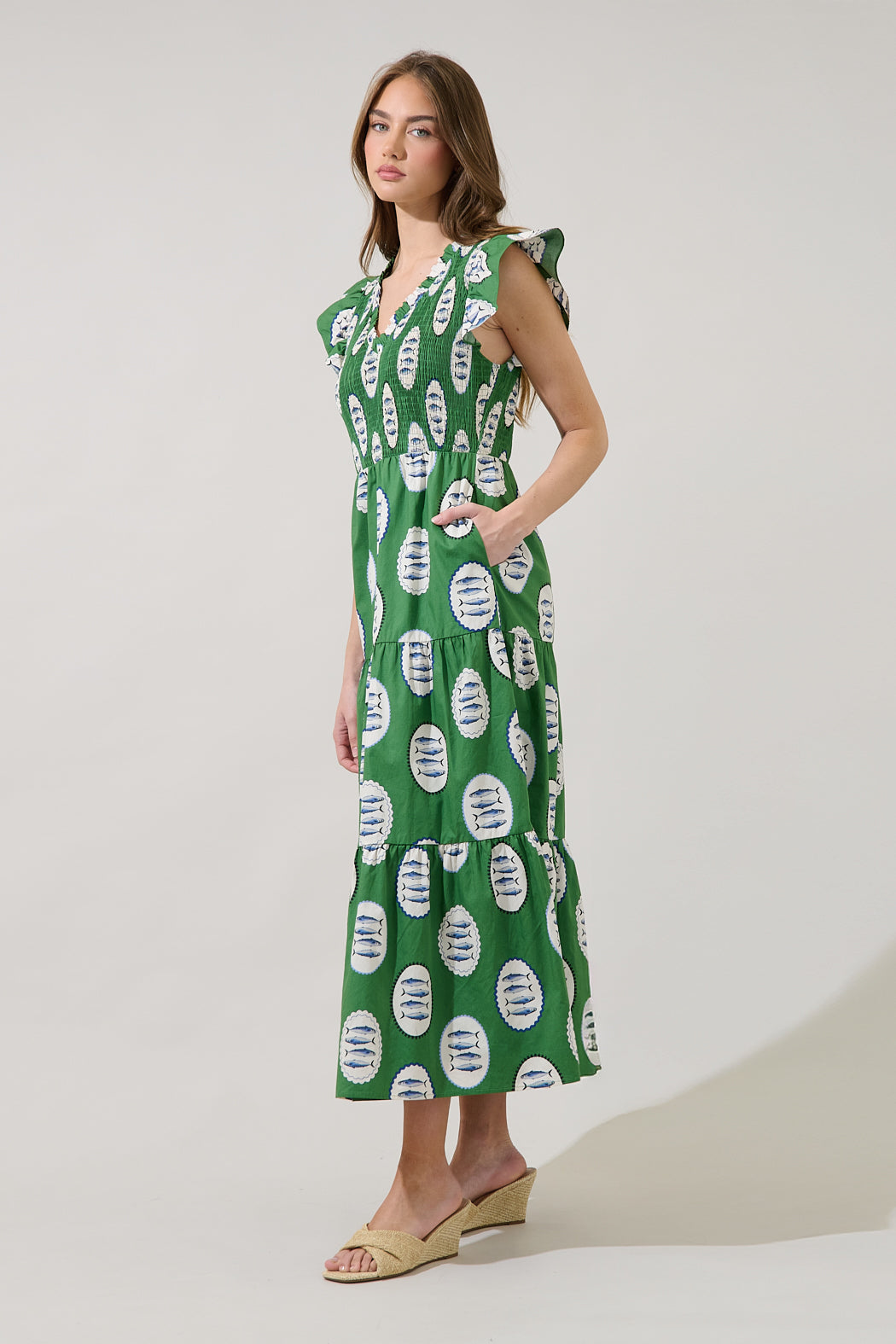 Sunfire Tiered Midi Dress Sardine Sea