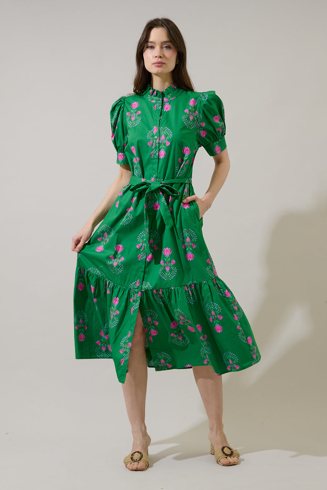 Giles Button Up Midi Dress Saura Floral