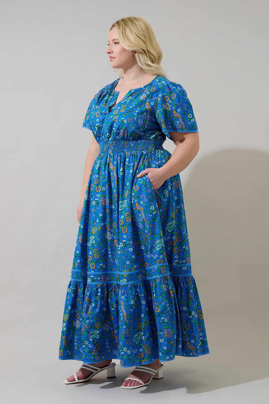 Ordy Smocked Midi Dress Heidy Floral Curve