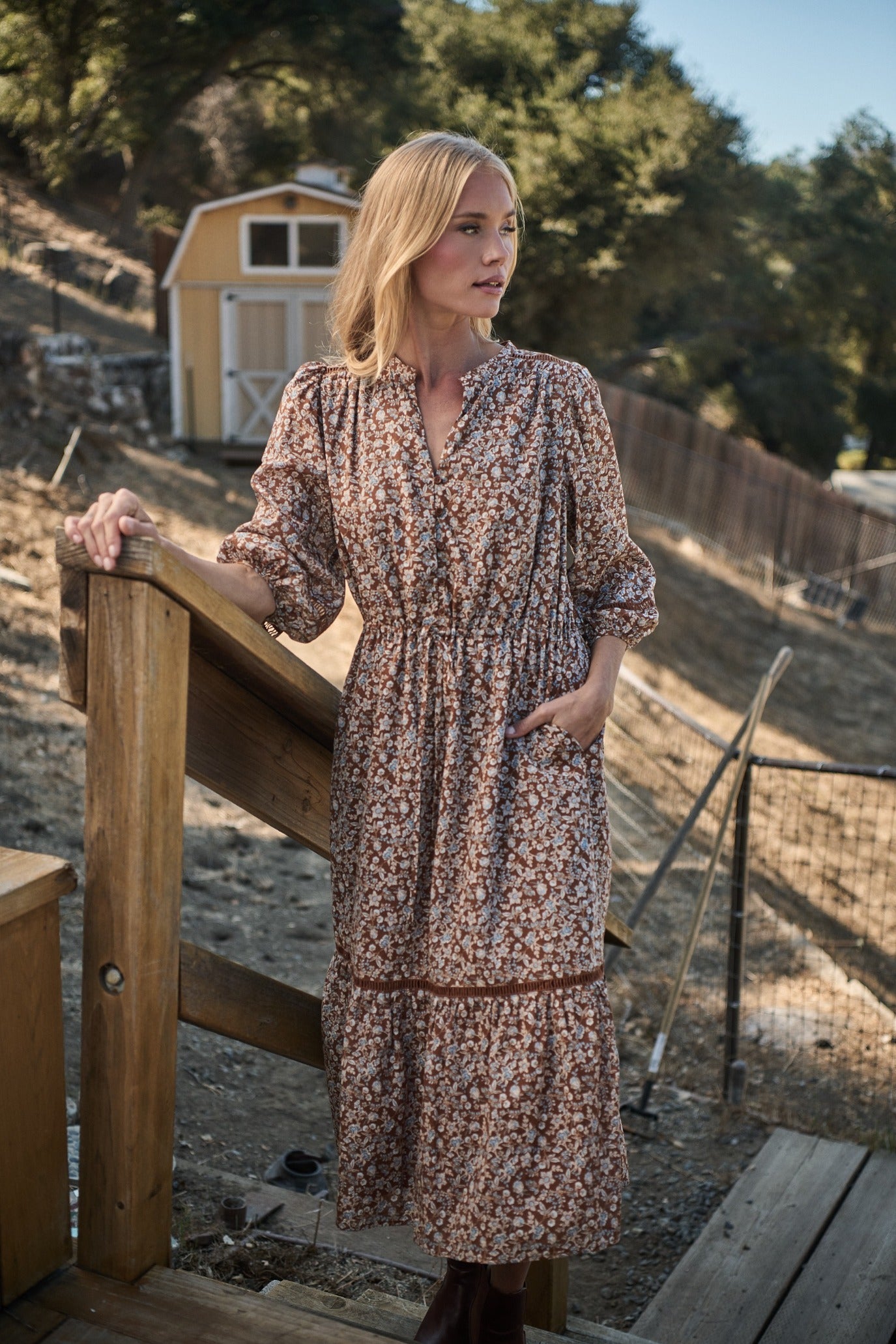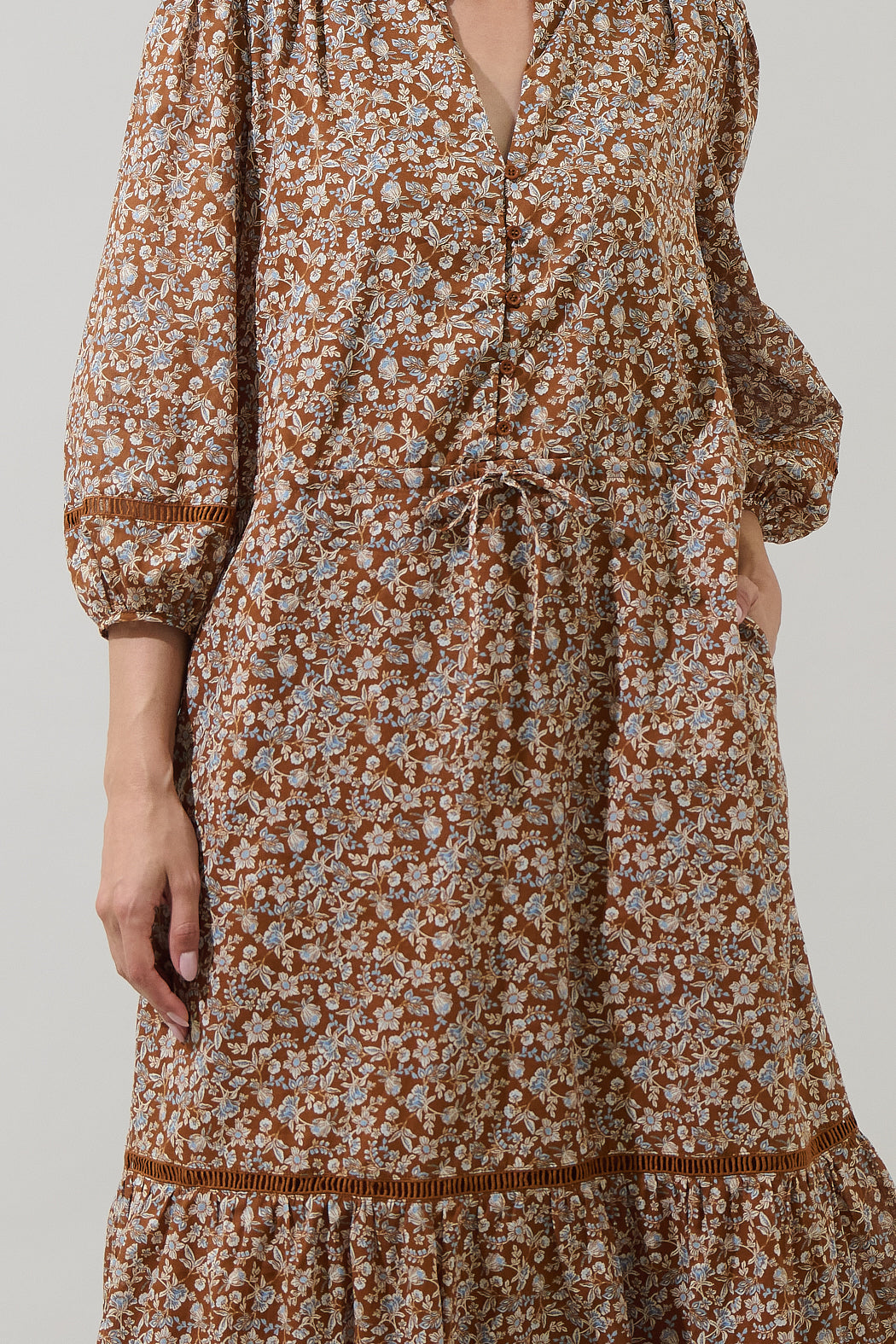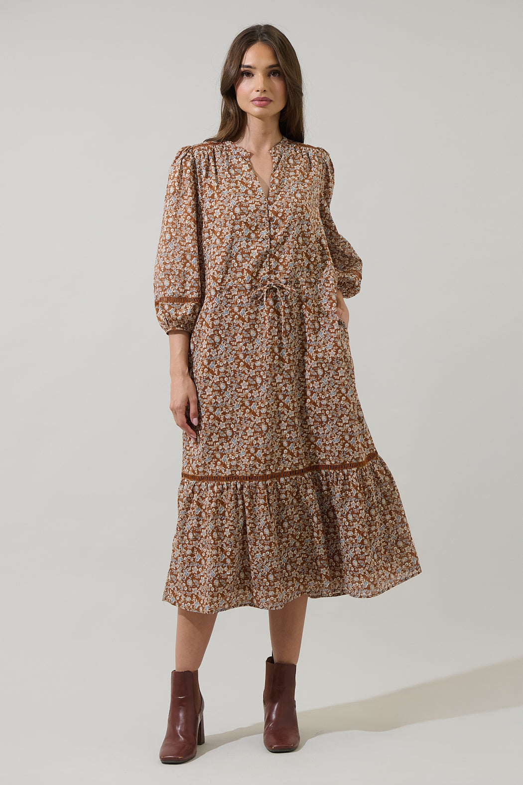 Ramsey Ditsy Harmy Drawstring Midi Dress