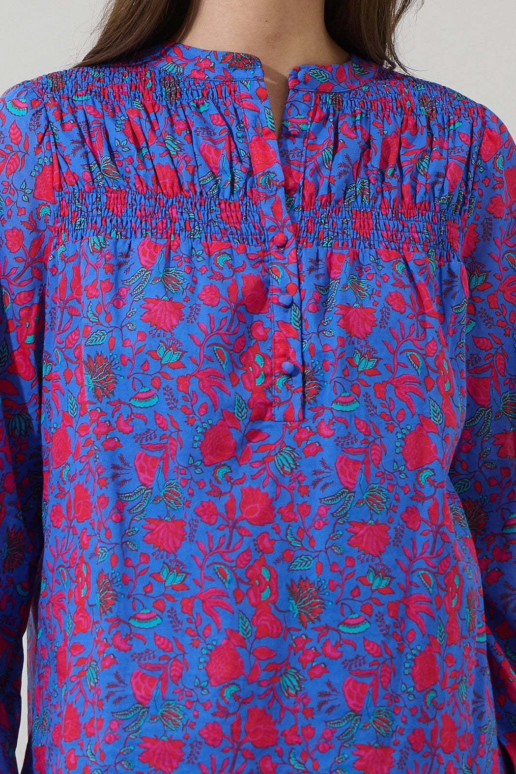 Looking for the perfect blend of fun and elegance? This floral top delivers! It features long balloon sleeves, a smocked chest, and a functional half button up design, all complemented by a beautiful floral print. Pair it with high waisted jeans and ankle boots for a chic, casual vibe.