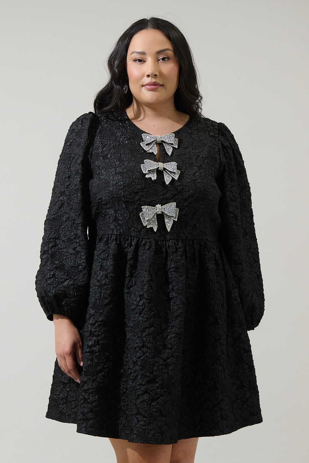 Turn heads at any celebration in the stunning Arielle Jacquard Glow Bow Dress! This party-ready dress is composed of stretchy velvet fabric that shapes long sleeves, a round neckline, and a princess-seamed bodice adorned with cute bow-inspired details and flirty keyhole cutouts at the center. It’s so cute to wear with some heels and long earrings to enjoy the day or night!