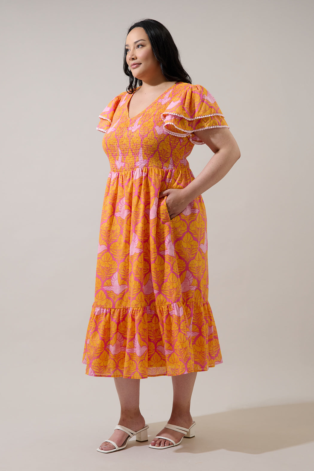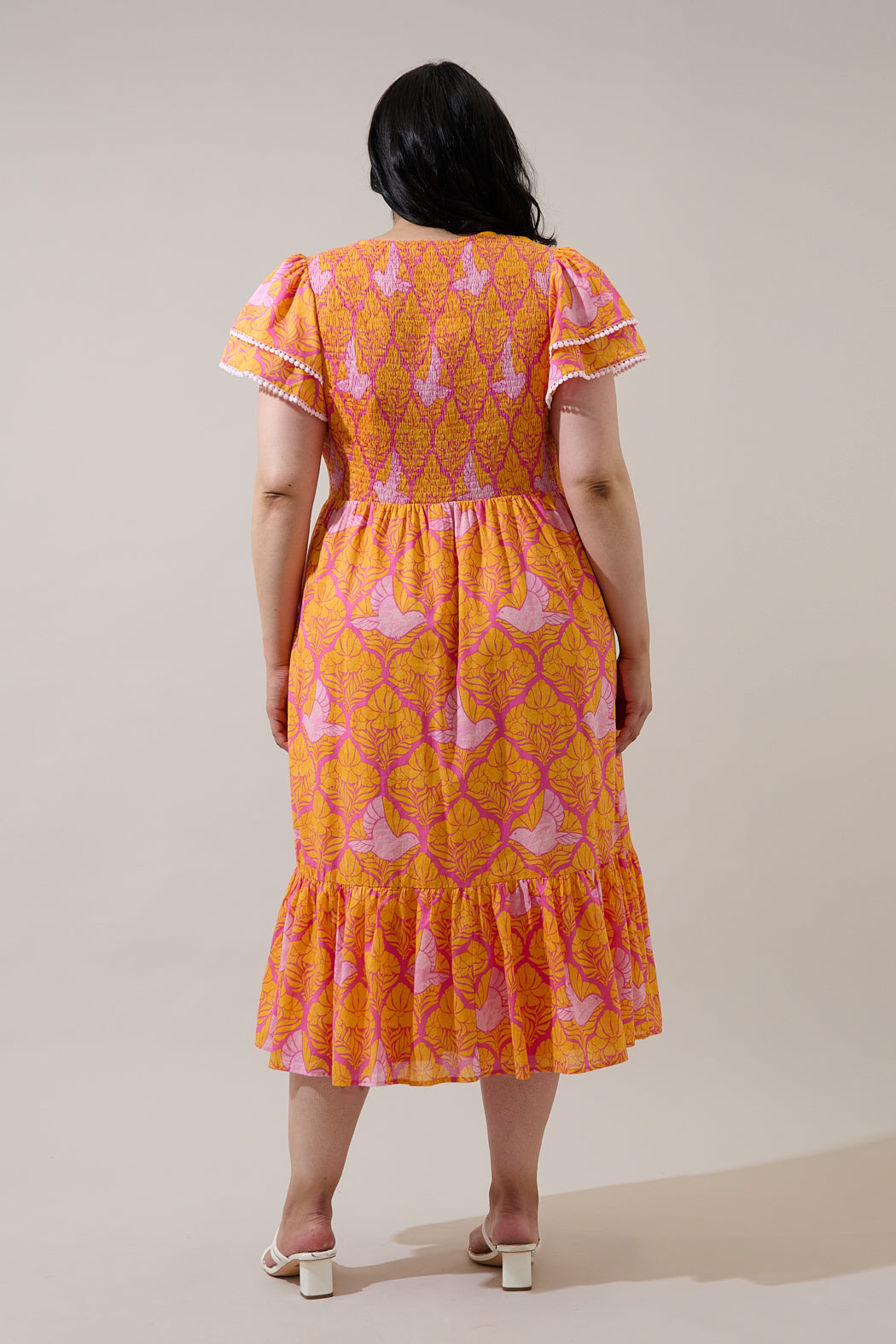 Jaidy Floral Patte Tiered Midi Dress Curve