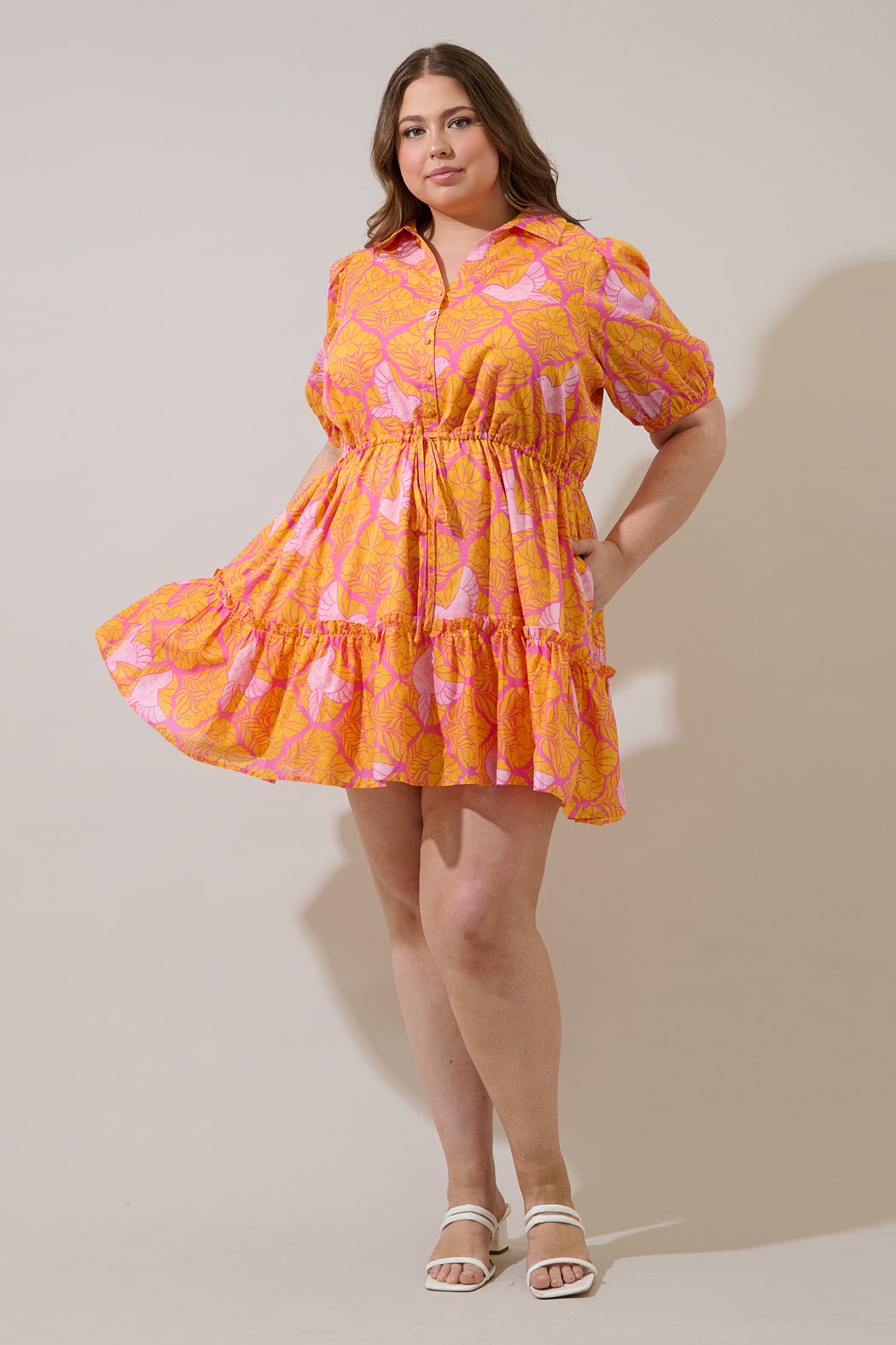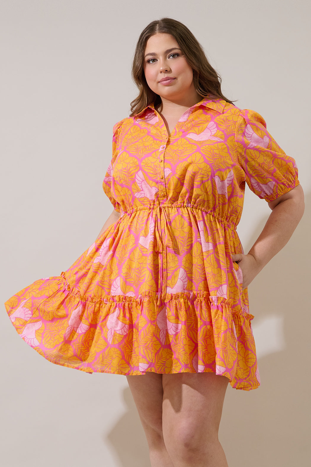 Jaidy Floral Stacie Button Down Mini Dress Curve