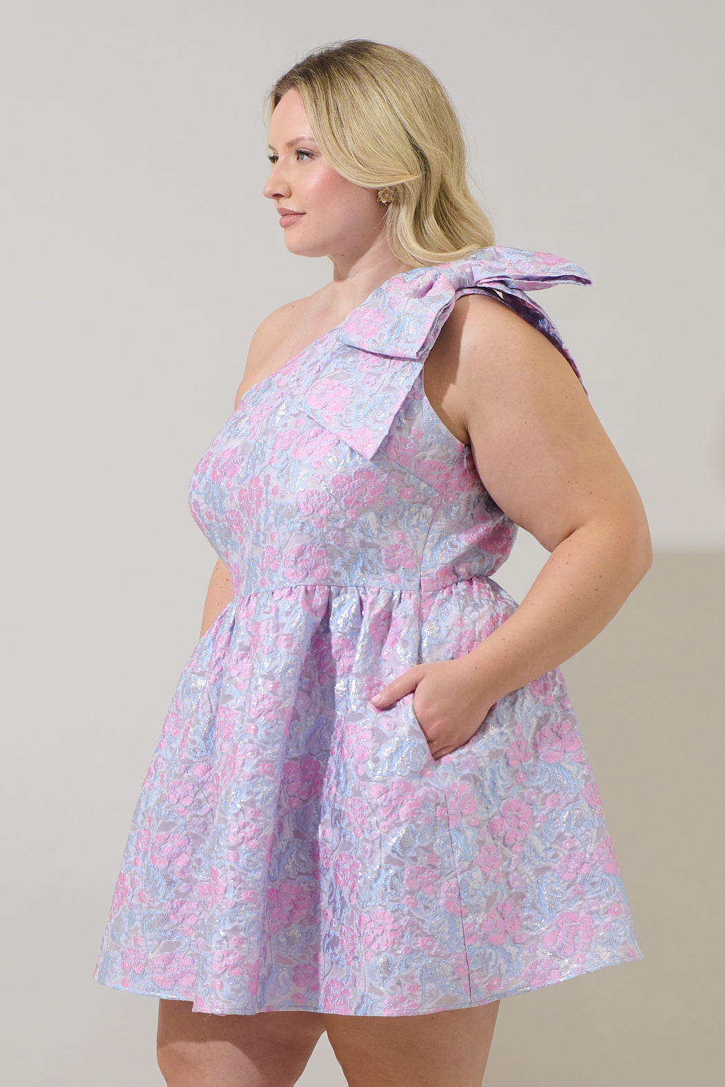 Mandy Jacquard Ivine Bow Mini Dress Curve